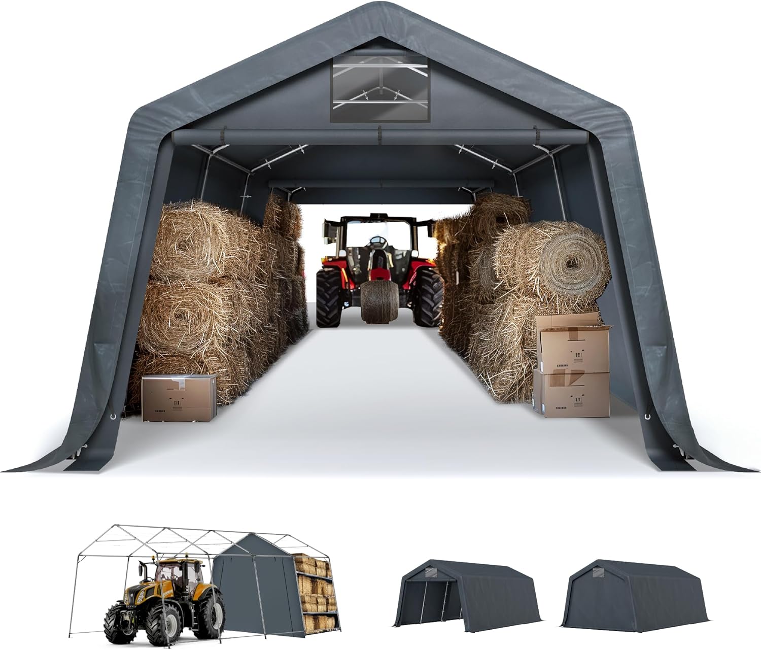 Sophia & William Carport Storage Shed 13x22 ft Portable, Heavy Duty Car Port Canopy Garage Shelter with Sidewalls and Roll Up Doors for Automobile Boat Motorcycle Bike, Gray
