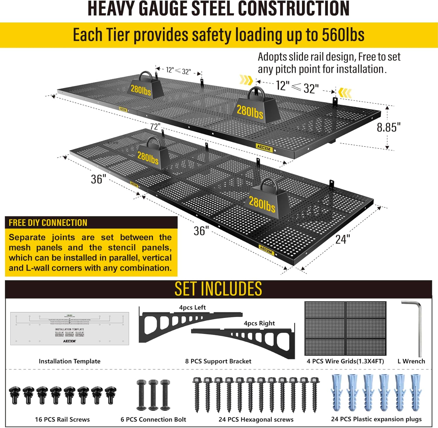 - Customer Support: AECXM offers comprehensive after-sales service. If you have any questions, feel free to contact our teamโweโll assist you promptly. (Note: For installation on brick or concrete walls, use expansion anchors to securely fasten the heavy duty shelving after drilling.)