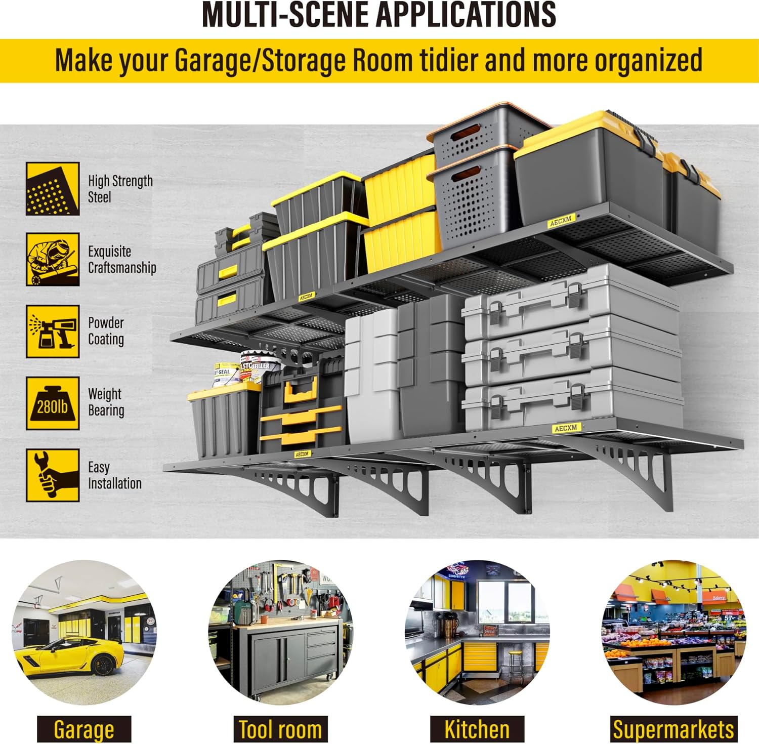 - Premium Craftsmanship: This garage wall shelving is crafted from a single steel sheet, precision-stamped and folded for strength. Unique high-density hole design enhances functionality while delivering a sleek, modern aesthetic