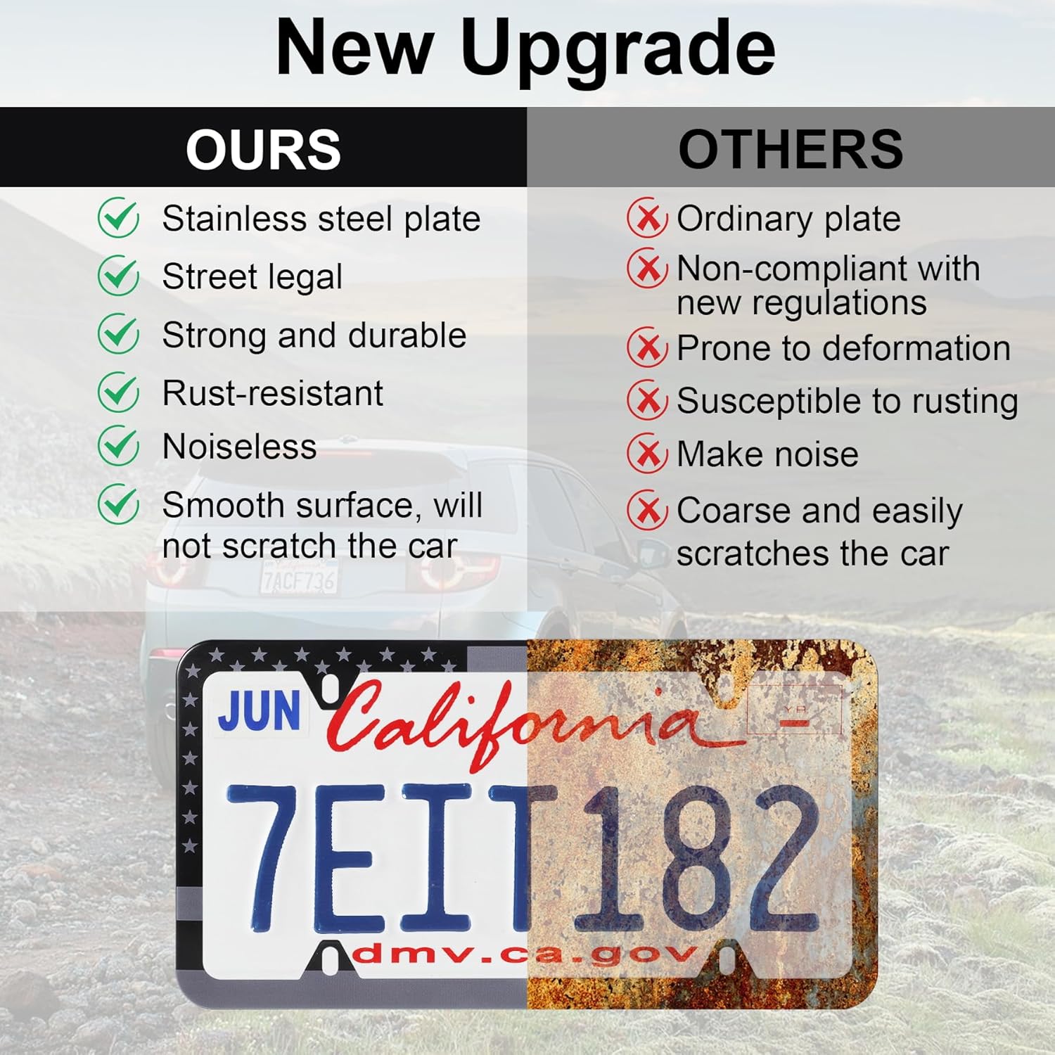 - 【Sleek and Stylish Design】The slim black design offers a clean, modern look that complements any vehicle exterior without blocking registration tags. The painted finish enhances texture, while the polished smooth edges are safe for both your car and your hands.