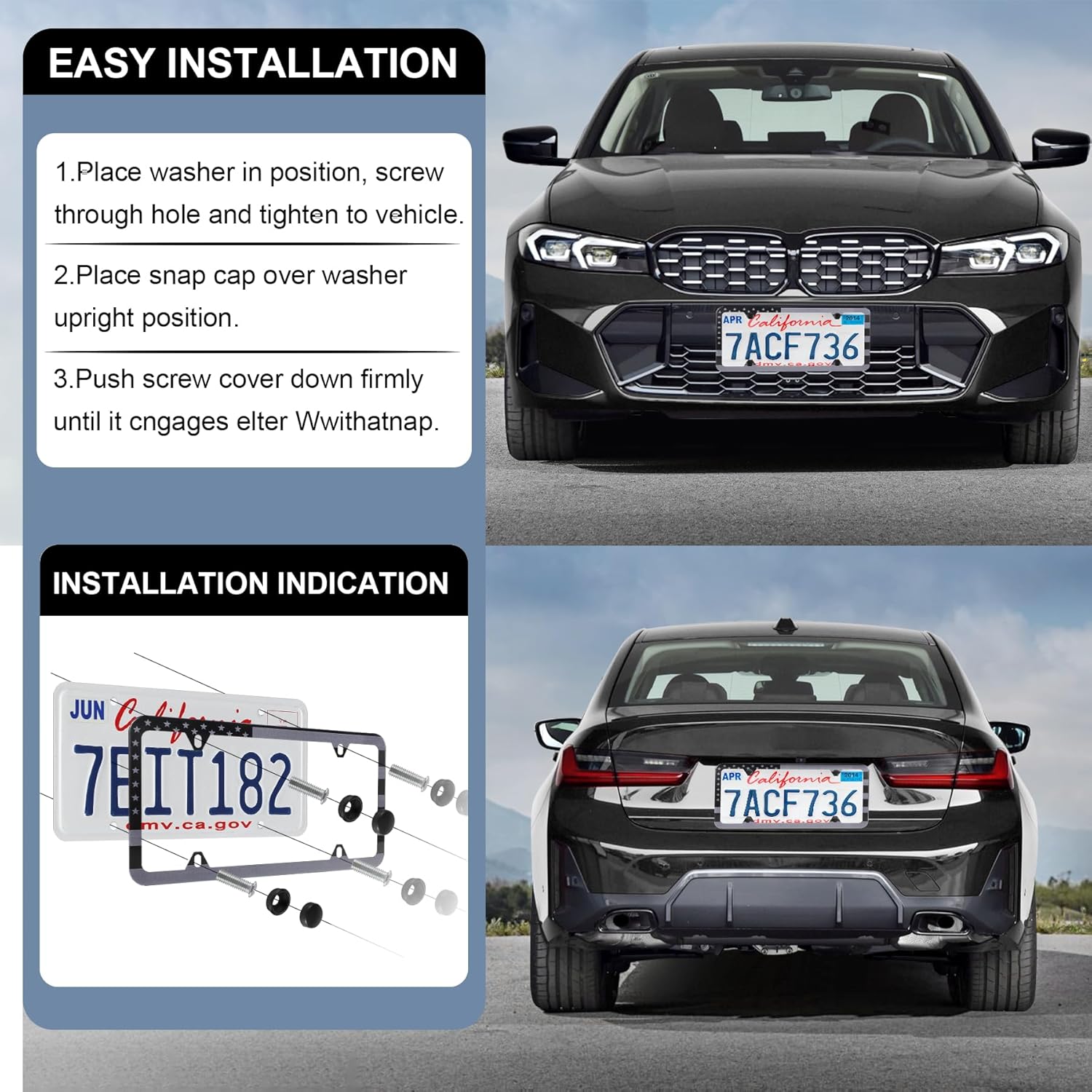 - 【Complete Installation Kit】 Includes 2 license plate frames and all the necessary accessories: 8 plastic screw caps, 8 plastic washers, 8 machine screws, 4 self-tapping screws, and 1 screwdriver. This all-in-one kit ensures easy and secure installation.