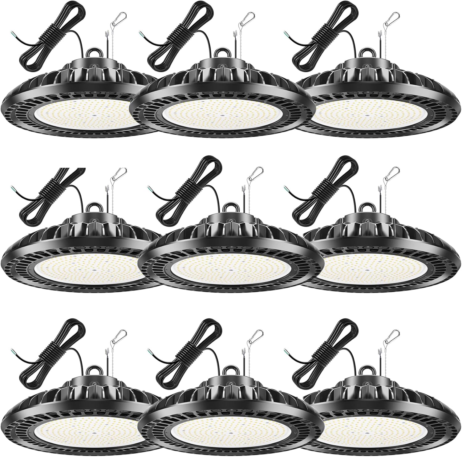 9 Pack 400W LED High Bay Light 56000LM 5000K 120VAC UFO Light IP65 Waterproof Dimmable Commercial Bay Lighting for Workshop|Garage|Factory -ETL&DLC Listed