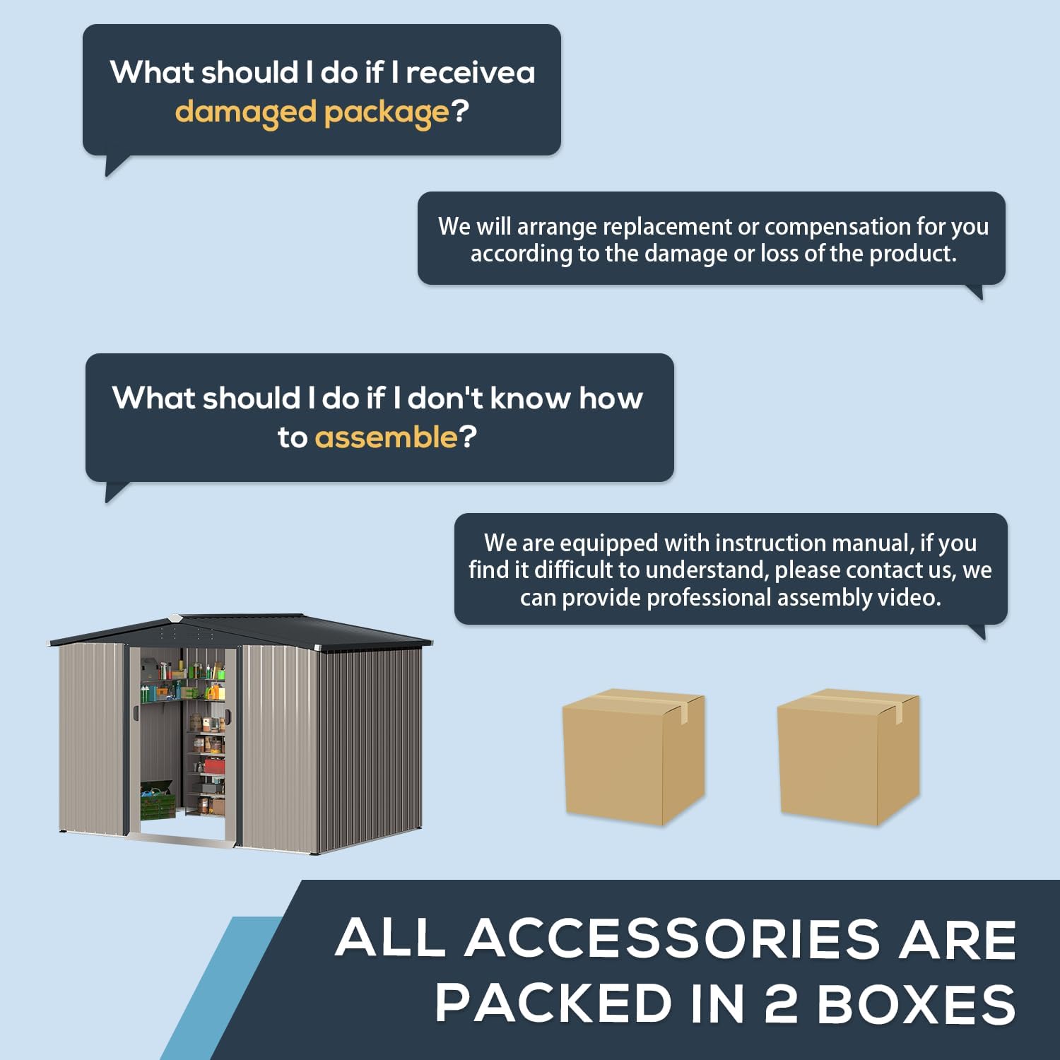 U-MAX 8 x 6 Ft Outdoor Shed, 6x8 Outdoor Storage Metal Cabinet Sheds & Outdoor Storage Clearance (Sliding Door), Garden Metal Shed for Yard in Grey