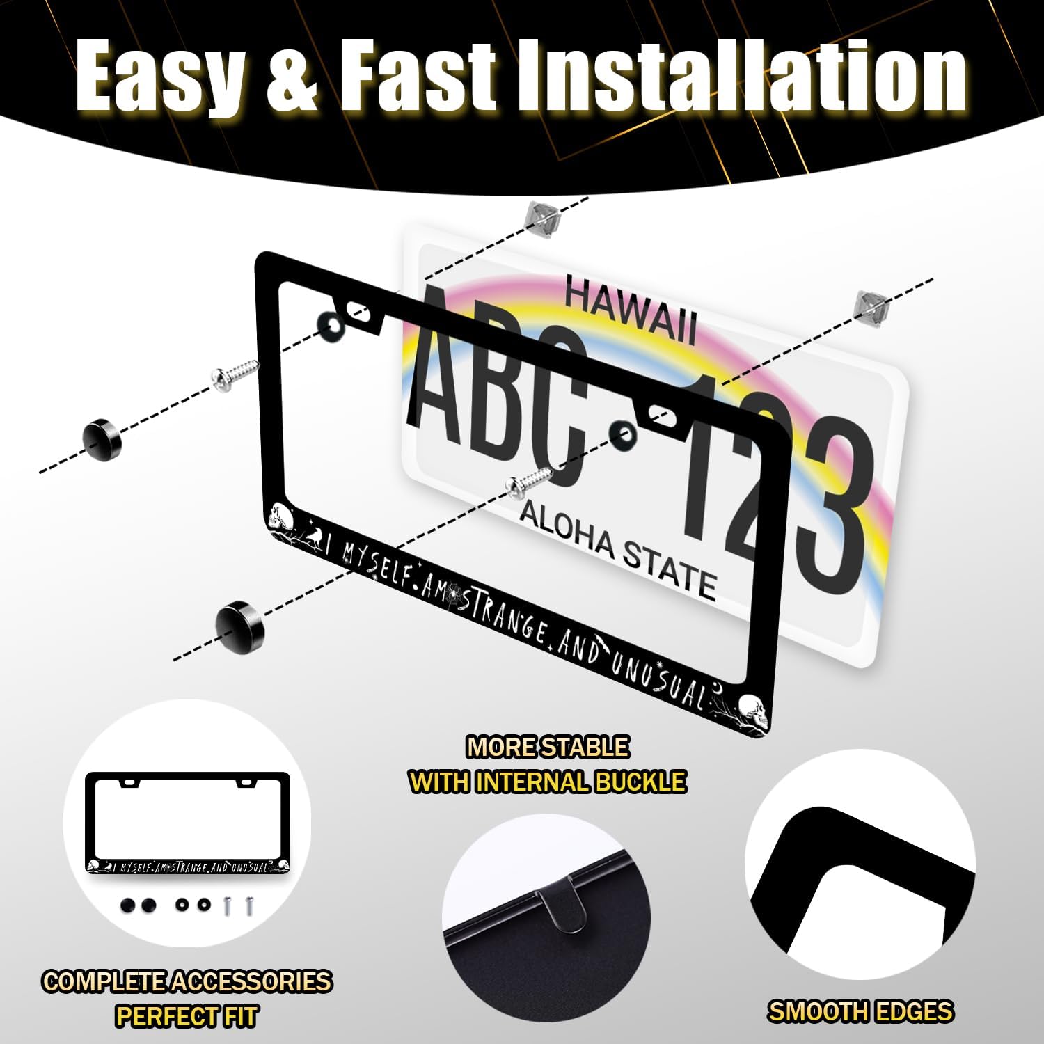I Myself am Strange and Unusual License Plate Frame Personalise License Plate Holder Front and Rear Car Tags Stainless Steel Auto Parts Funny License Plate Men Women Decoration with Screws 12.2"x6.2"