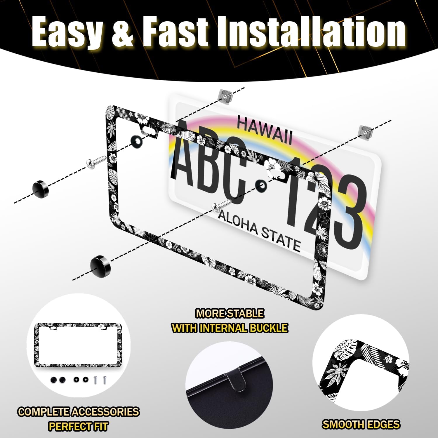 - This license plate Frame with holes, including Accessories: screws, nuts and washers. Easy to install.you donβt need to buy any other hardware or fasteners. Anti-theft caps are also included