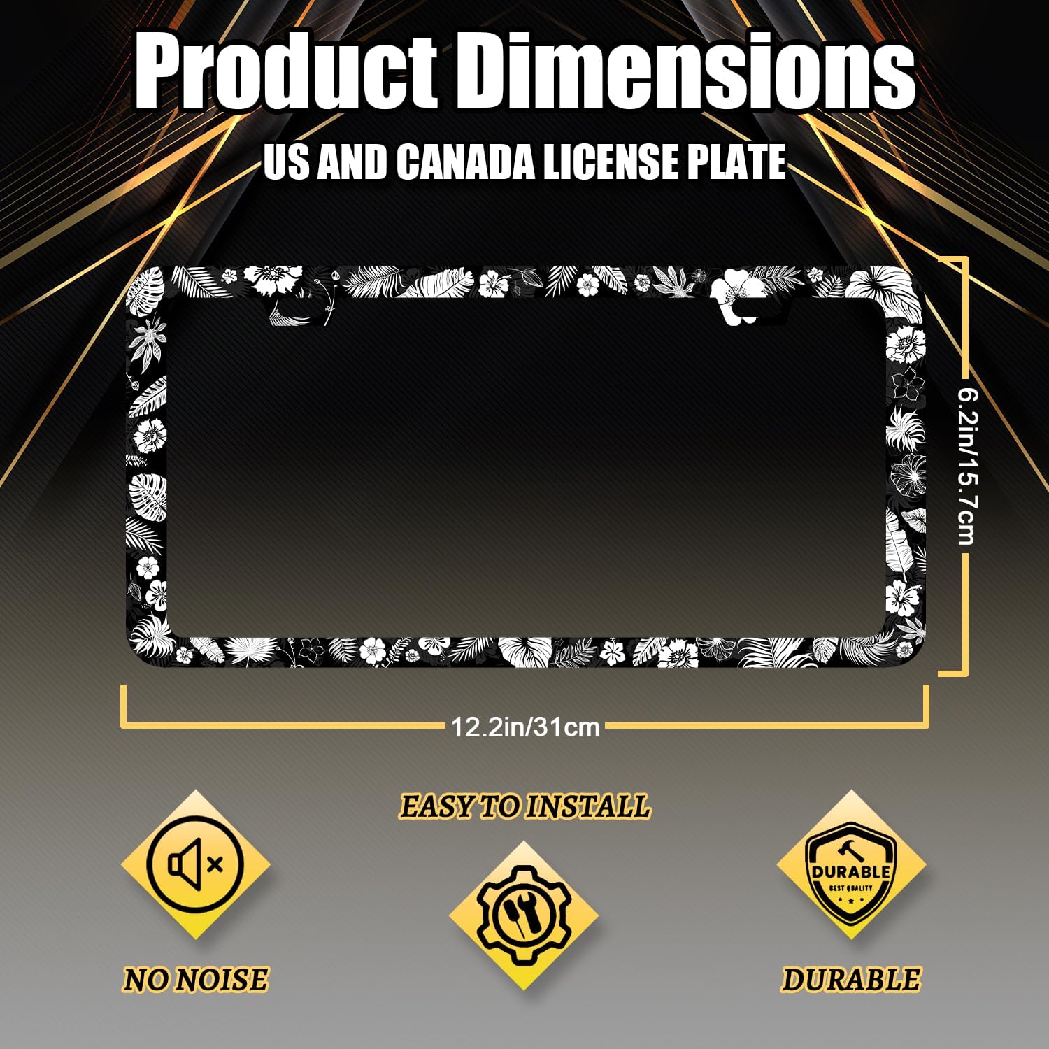 - The size of the license plate frame is: 12.3" x 6.3" , it fits all standard size US and Canada vehicle license plates.the stylish design frame fits ly on your car license plate.