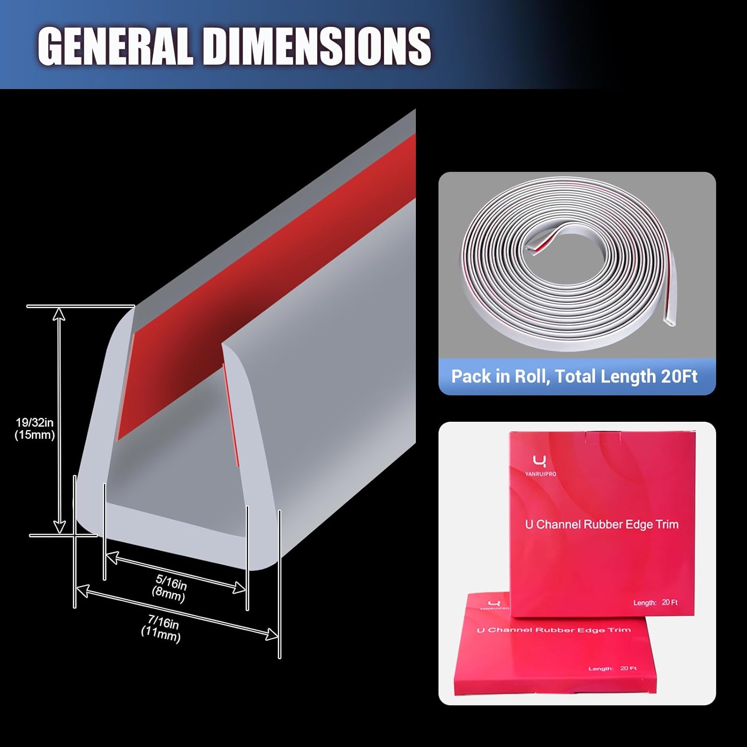 - High Quality EPDM Rubber: Durable and not easy to age, extremely hard wearing and washable. EPDM rubber material edge trim is not easily broken down by ultraviolet light and ozone, has better thermal stability, radiation resistance and weather resistance.
