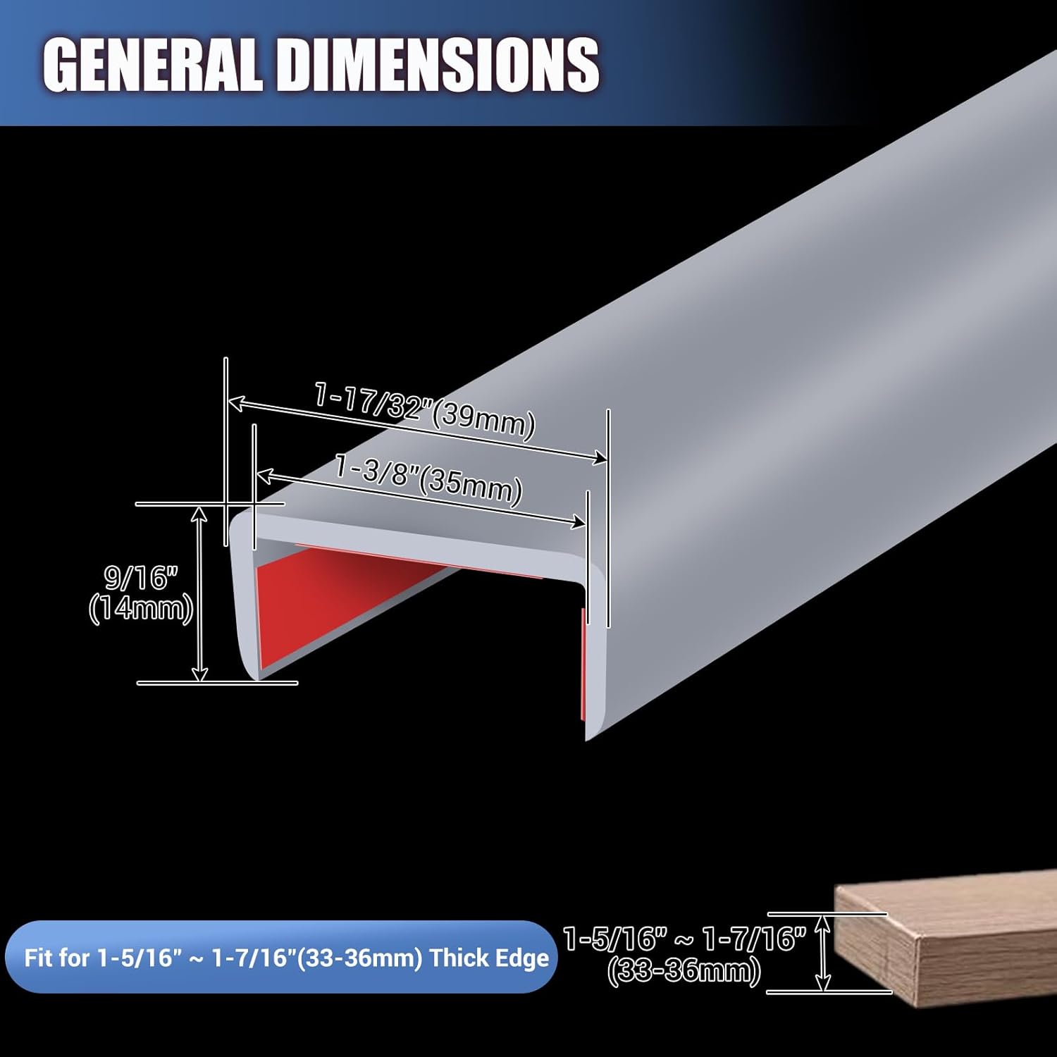 Rubber Edge Trim, Flexible Self Adhesive U Shaped Peel and Stick Edge Banding, 1-3/8"(35mm) U Channel Protector for Door Sides, Edge Guards for Woods, Furniture, 20Ft, Grey Color