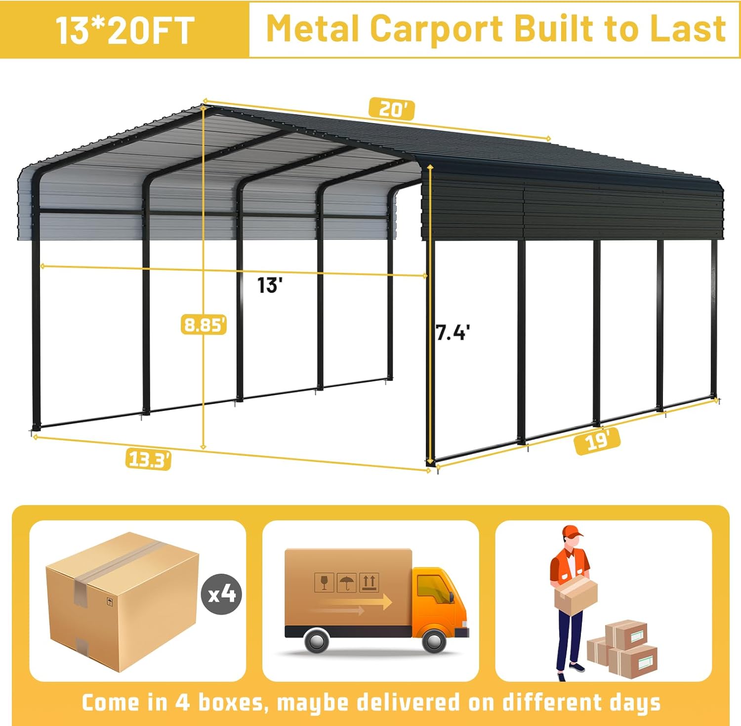 - Multifunctional and High-quality: Whether you need shelter for your car, boat, or RV, this 13x20 carport has it covered. It's also great for outdoor activities, storage, and more. You can also place a sectional dining set under this canopy to enjoy your party at any time.