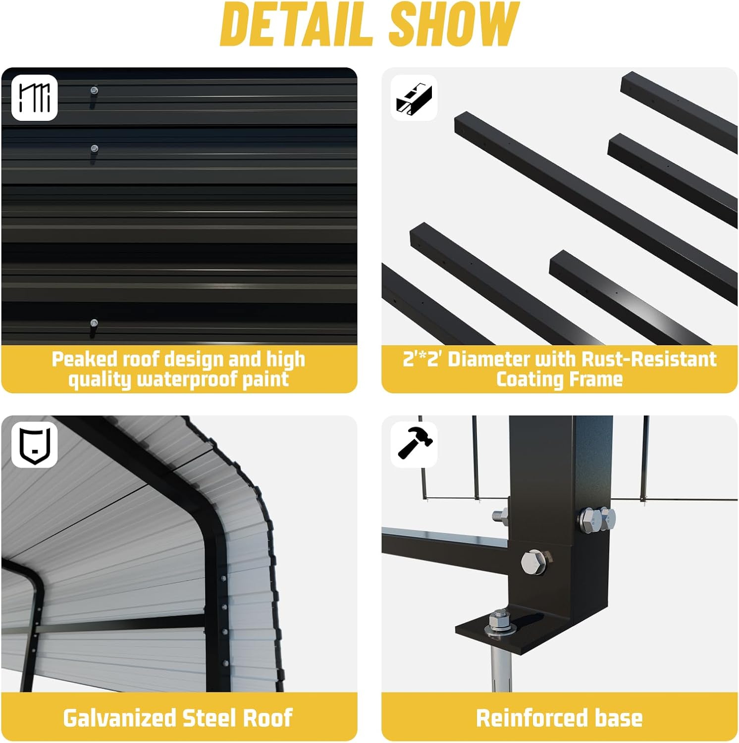 - Multifunctional and High-quality: Whether you need shelter for your car, boat, or RV, this 10x15 carport has it covered. It's also great for outdoor activities, storage, and more. You can also place a sectional dining set under this canopy to enjoy your party at any time.