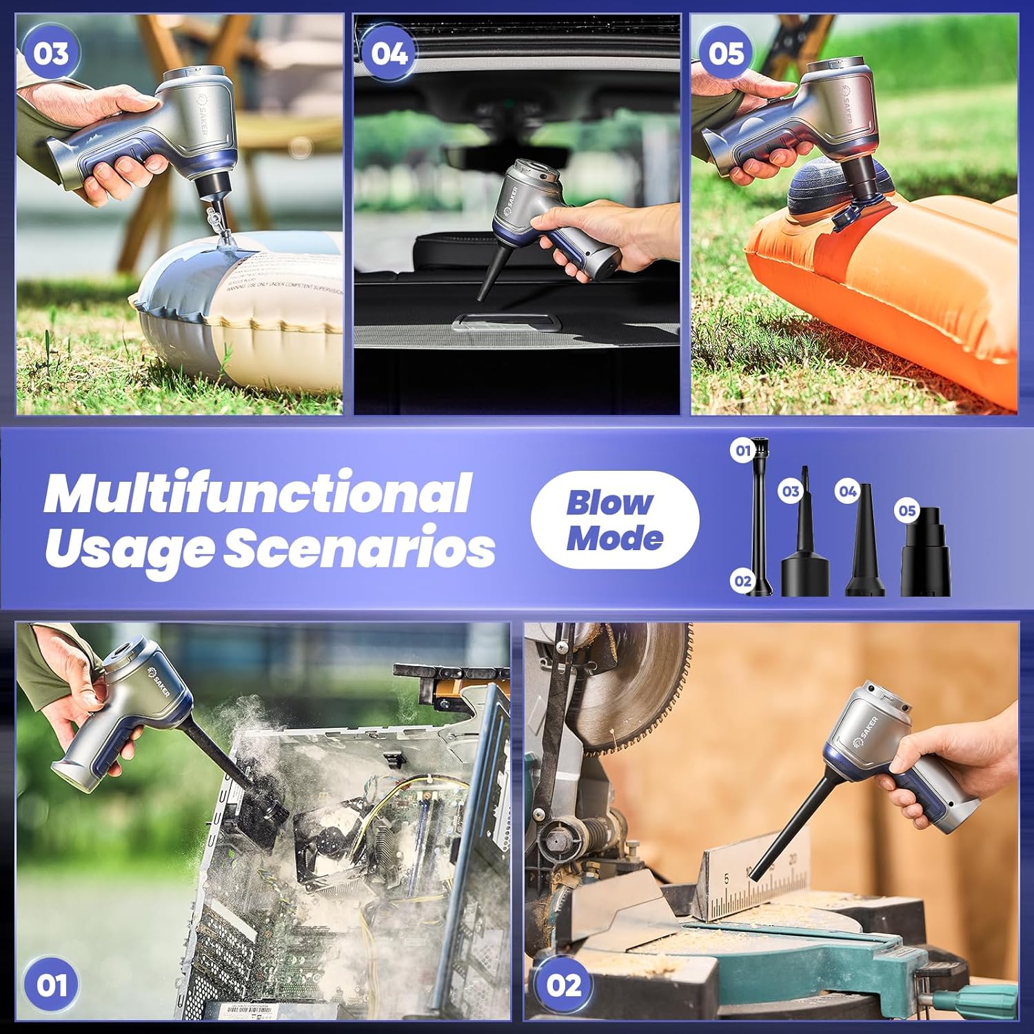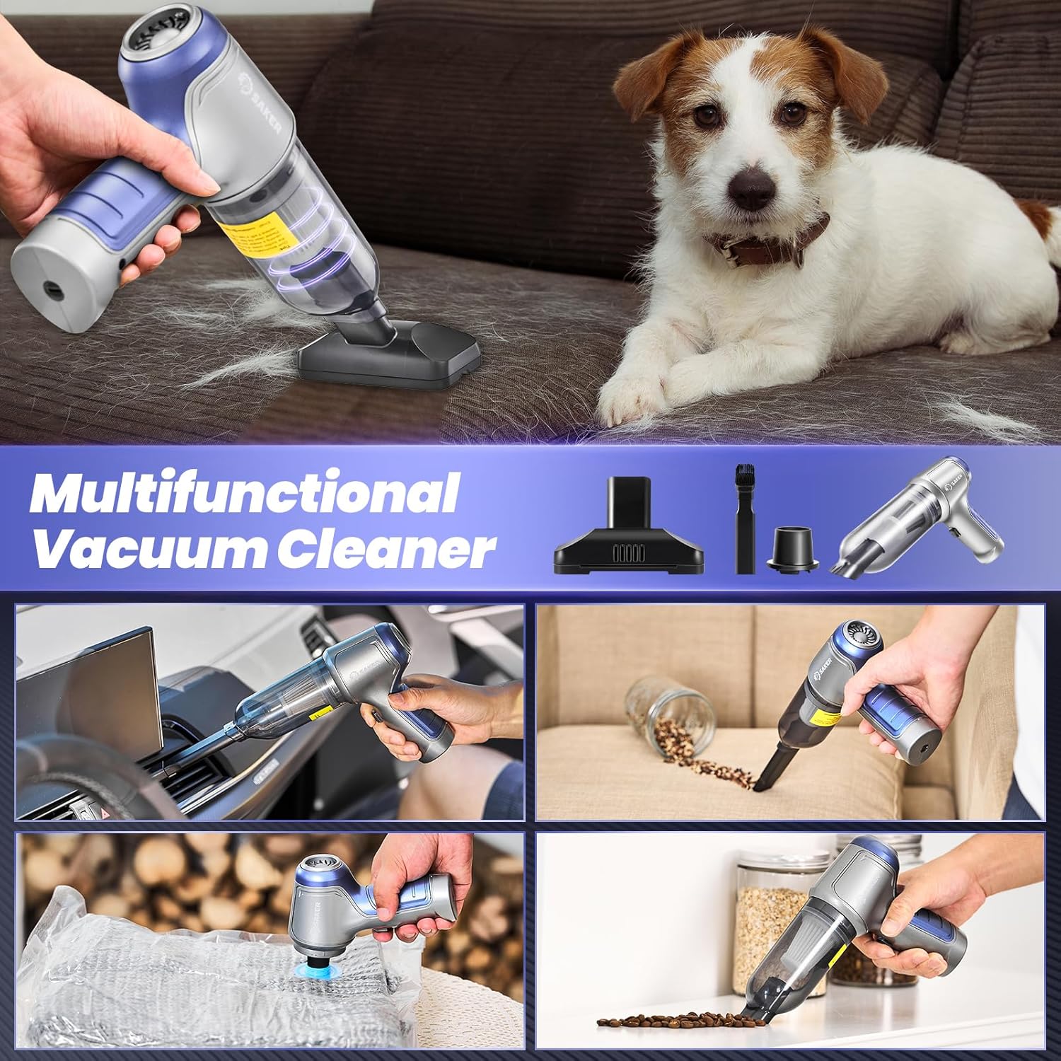 - 【3-in-1 Multifunctional Mini Vacuum Cleaner】The mini vacuum cleaner is equipped with a variety of accessories to meet various usage scenarios of blowing, sucking and pumping. It can not only clean computer keyboards, host computers, windows and other difficult-to-clean gaps, but also clean large-area stains in sofas, seats, cars and other areas to meet your various cleaning needs.