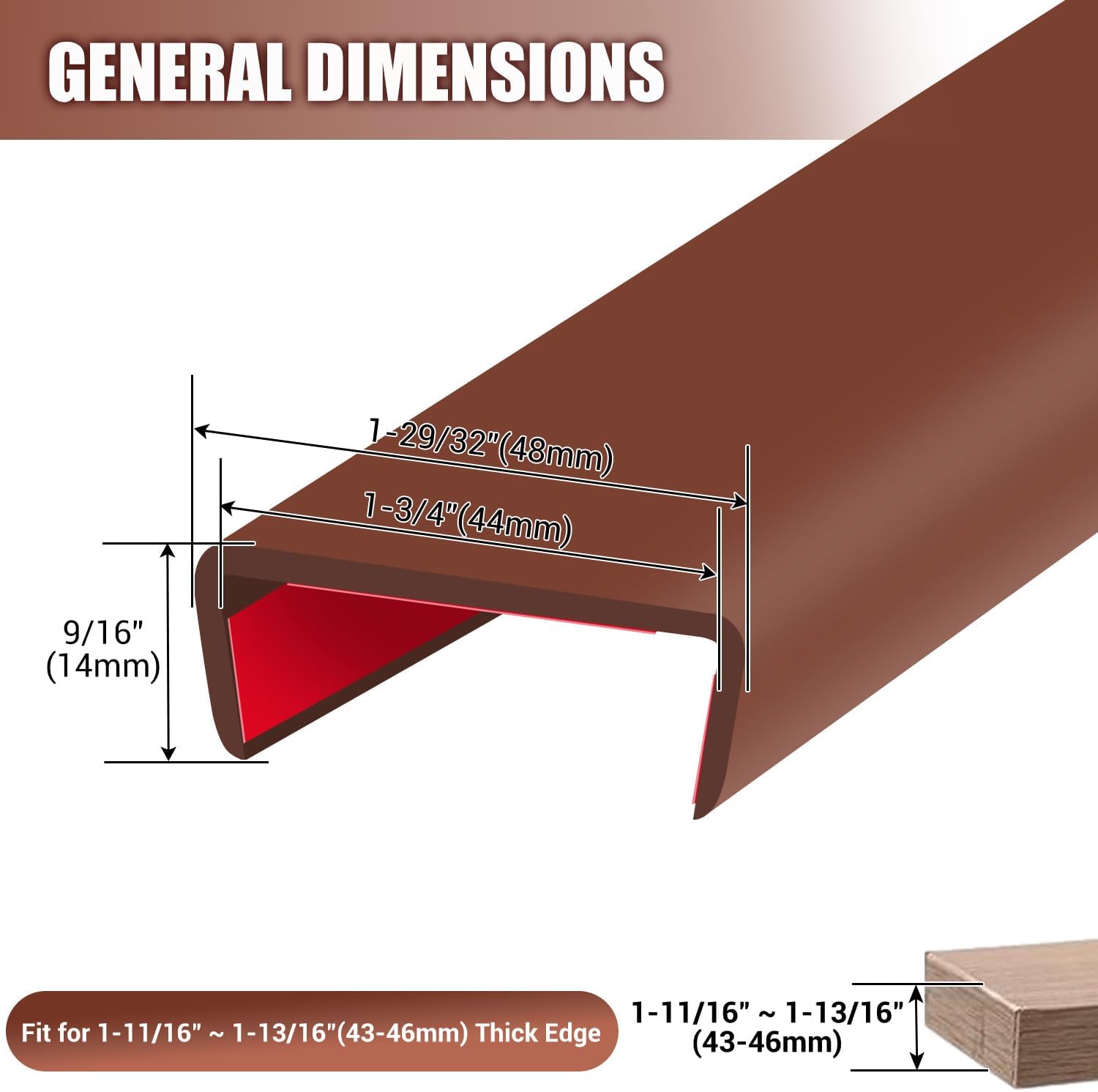 Rubber Edge Trim, Flexible Self-Adhesive U Shaped Peel and Stick Edge Banding, 1-3/4"(44.5mm) U Channel Protector, Edge Guards for Woods, Furniture, 20Ft, Brown Color