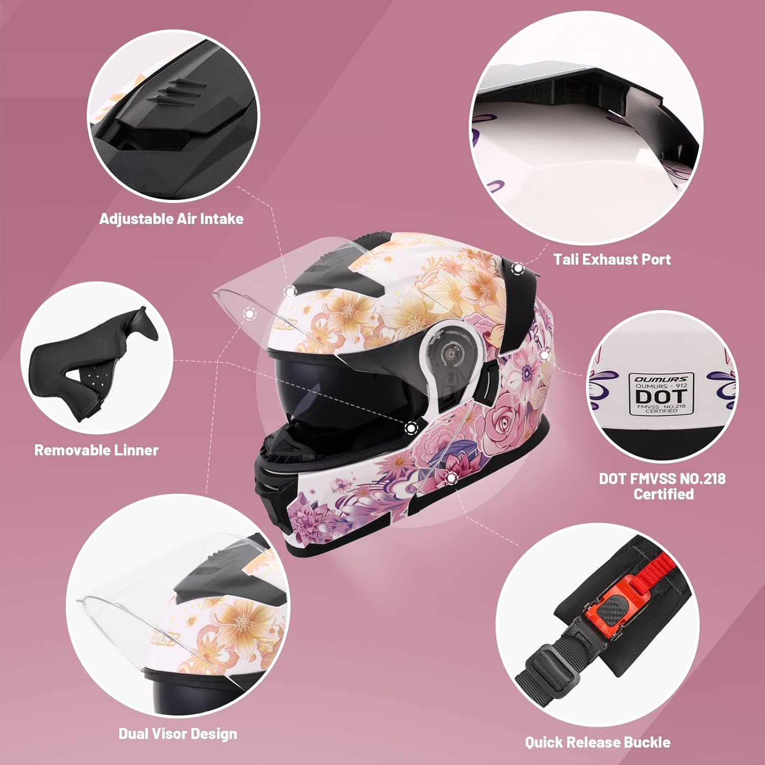 - [Adjustable Air Vents Design] - OUMURS full face modular helmet have adjustable air vents , make fresh air keep entering the helmet, You can have a good riding experience even in hot summer. The optimized vent reduces the wind noise and can ride more quietly with this modular helmet