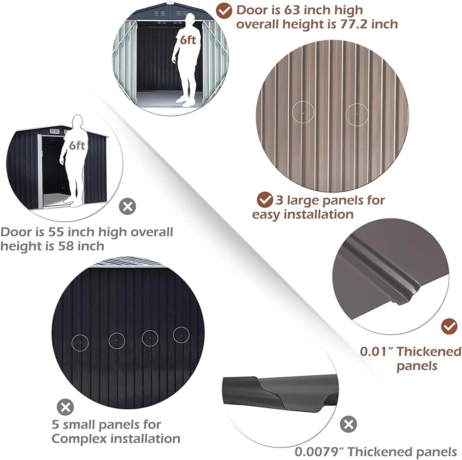 - Spacious Storage Solution: This ultimate storage shed features a spacious 36 Sq.Ft footprint, double-door design allows for an 3.9 feet wide opening. With enough room to accommodate 5 lawnmowers, 8 kids' bicycles, 6 snowmobiles, or 2 Vespa motorcycles, its large dimensions provide ample space for all your outdoor storage needs.