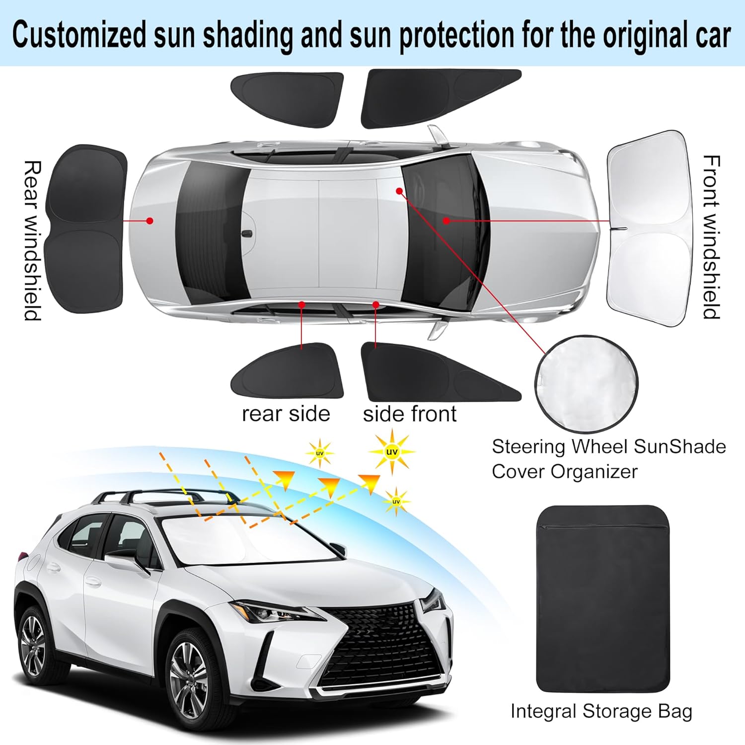 TINGLU Window Shades for Lexus UX 2019-2024 2025 Accessories Car Side Full Windows Windshield Sun Shade Sun UV Rays & Privacy Protection for Camping,Napping,and Relaxing 6PCS