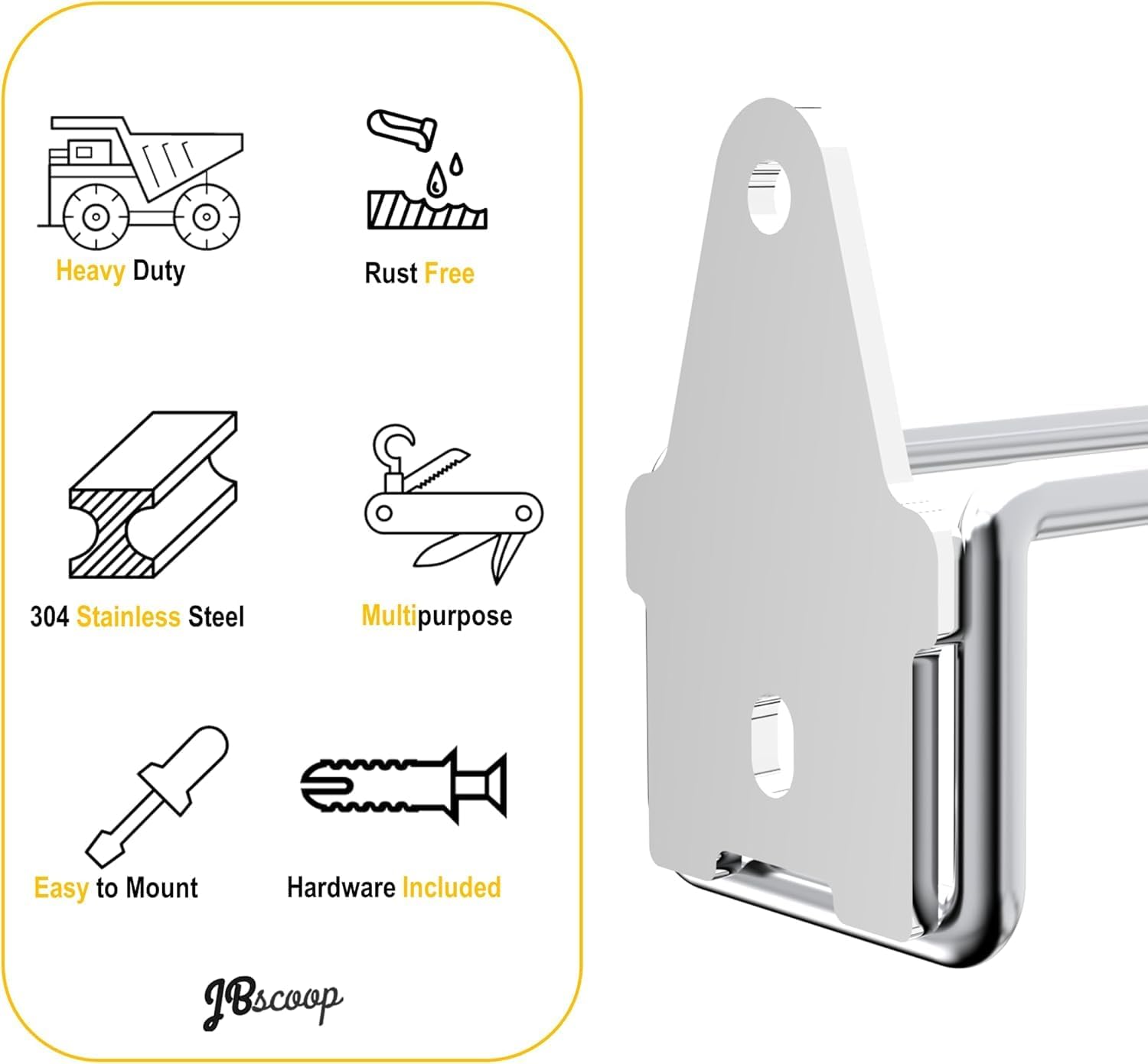 - Maximize Space Efficiency: Declutter your home or garage with our stainless steel wall-mounted hanger, perfect for organizing tools, accessories, and more. Free up valuable floor space while keeping essentials within easy reach.