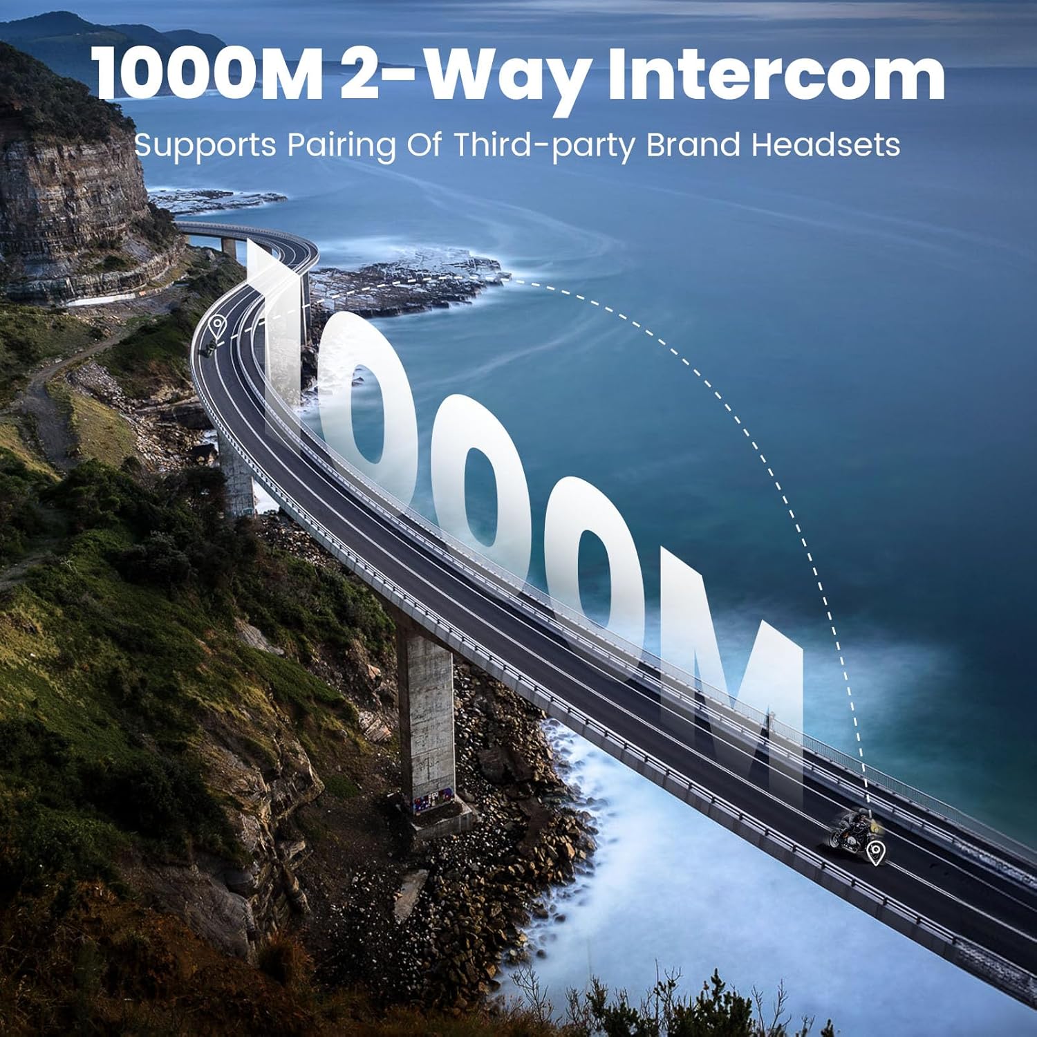 - 1000 Meters 2-Riders Intercom & FM: This motorcycle bluetooth headset can connect two mobile phones at the same time. When two people talk, the maximum call distance can reach about 1000m without obstacles. (Please note that the communication distance may vary depending on the surrounding obstacles and radio wave environment) Equipped with FM radio function, you can listen to news such as politics and sports while traveling by motorcycle