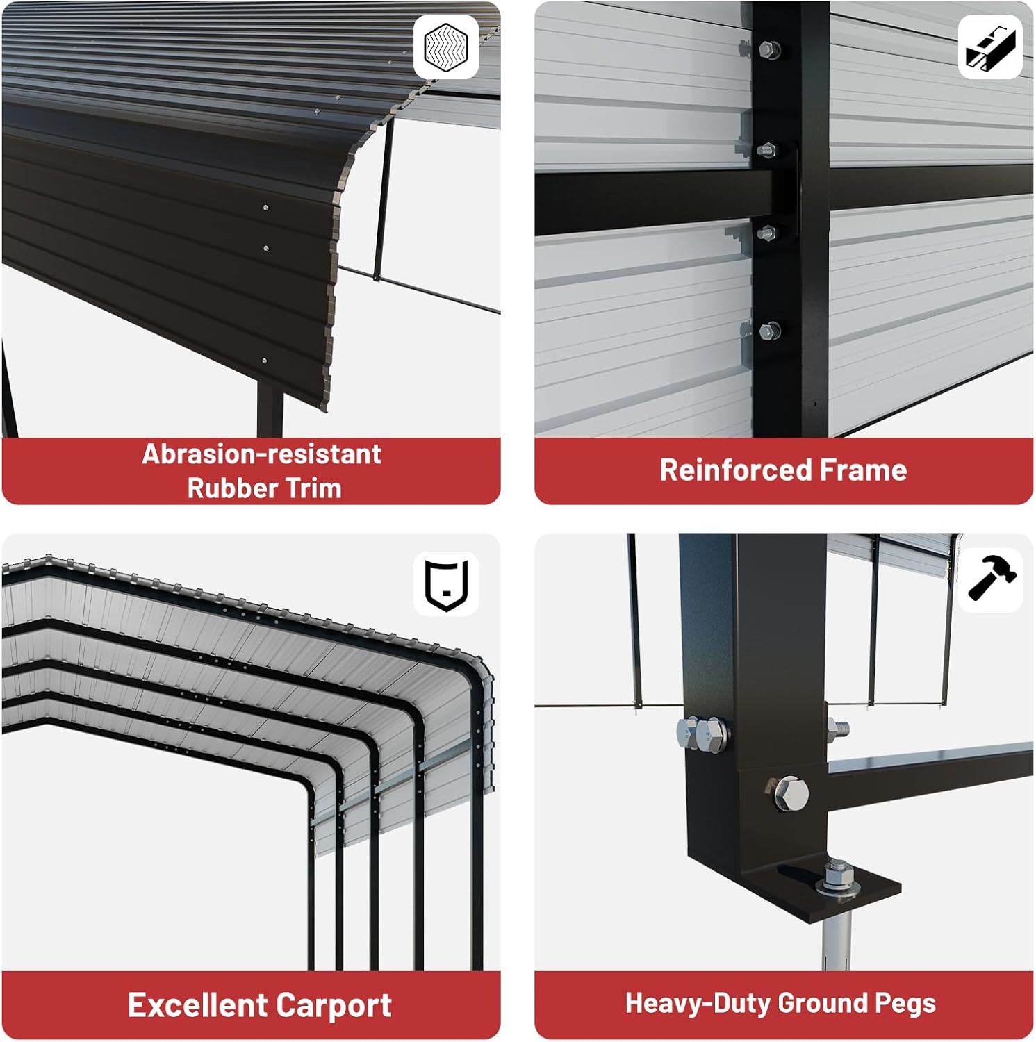 - Premium Metal Carport: NUGRIART heavy duty carport is made of premium galvanized steel and 2"x 2" powder coated tubing frame. This sturdy carport is rustproof, sunproof, waterproof will provide superior protection for your vehicles. Wind Speed: 100 mph; Snow Capacity: 35 PSF. Our carport will be good to withstand rain, wind, snow and other harsh weather.