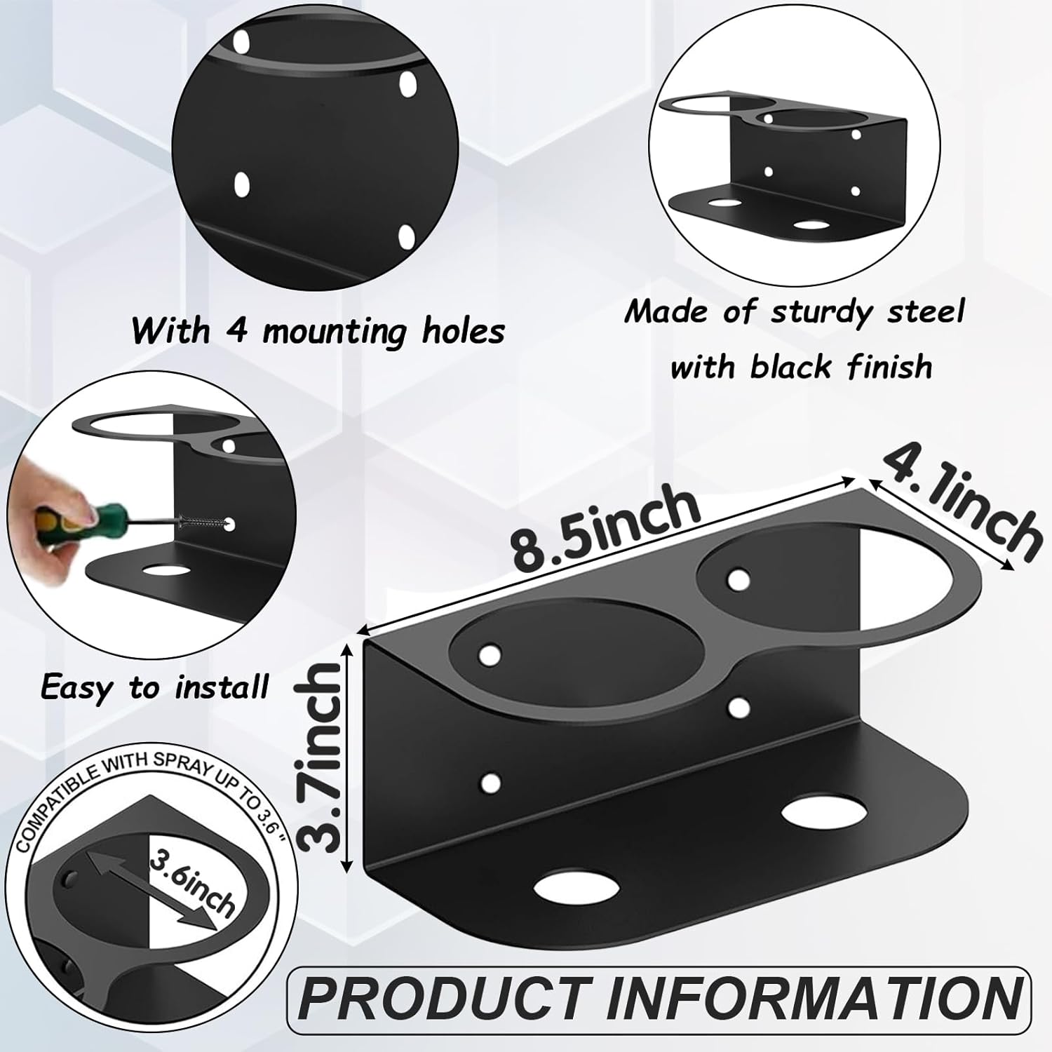 - Easy to Install – Hardware Included: Each spray can holder wall mount comes with 4 screws and 4 nuts. No assembly required—just secure to the wall through the 4 mounting holes. Ideal for garages, workshops, or inside cabinets