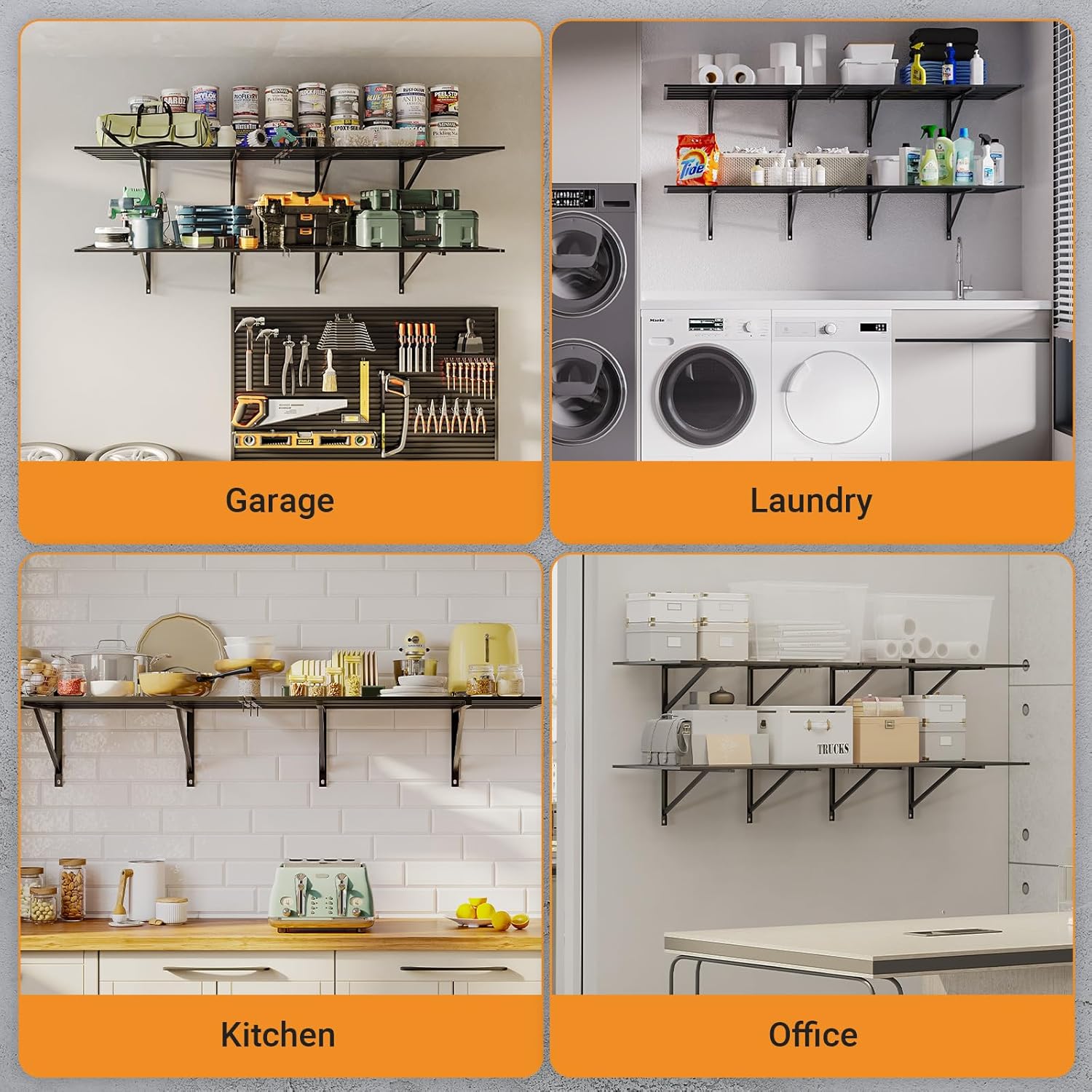 Solid 2x6 ft Garage Storage, 2 Pack 1600 lbs Total Weight Capacity, Heavy Duty Wall Mounted Shelving for Home, Kitchen & Pantry, Black