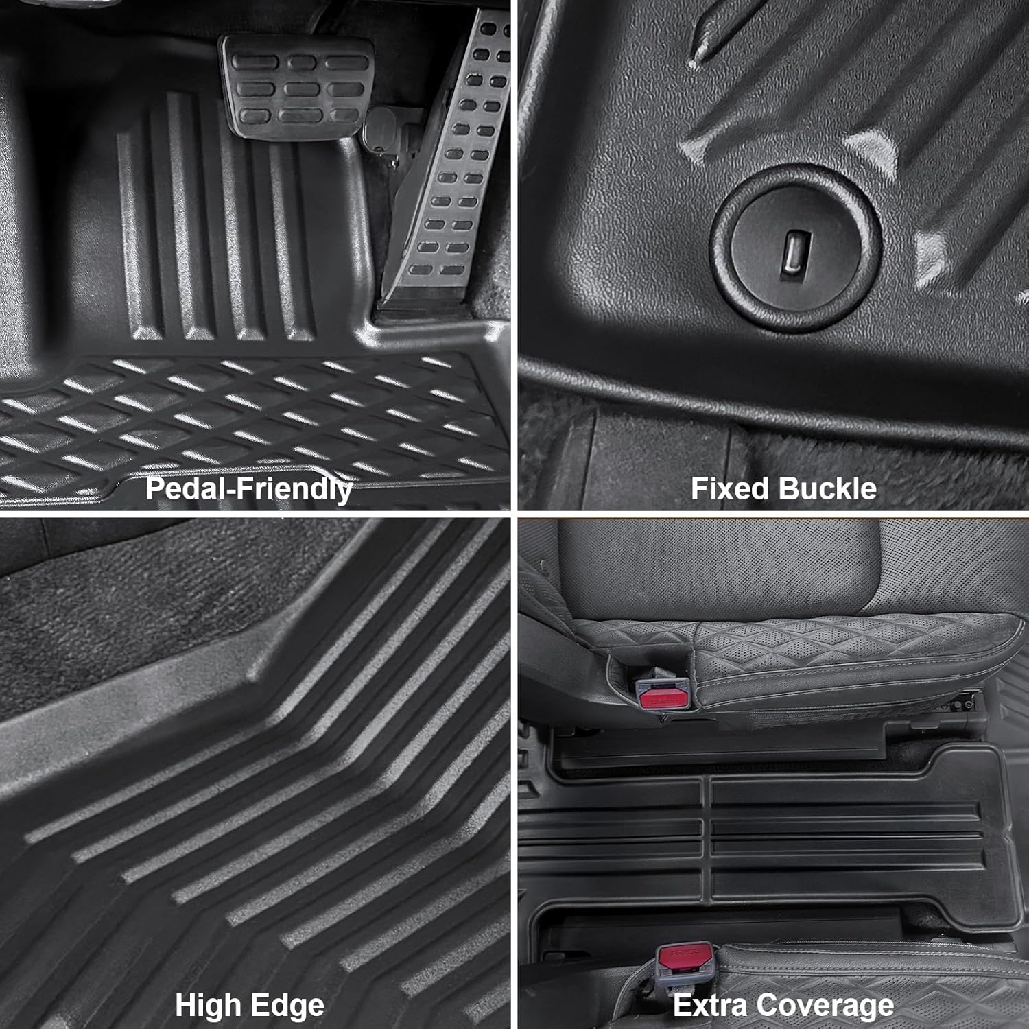 - Upgraded Design: Cargo mat with 2 and 1 design allows you to adjust the seat easily; extended floor mats covered the full isle way to the 3rd row