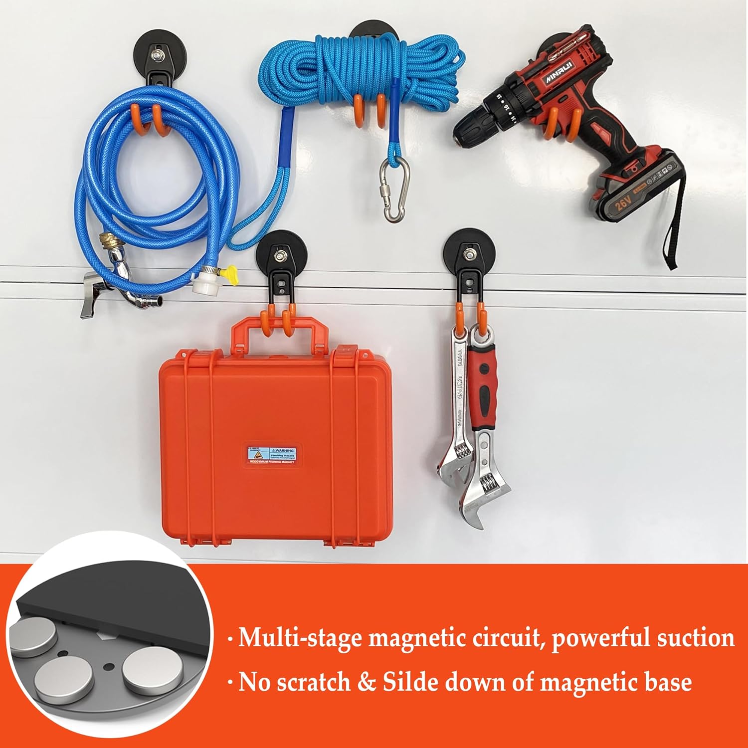 - [4 Pack Magnetic Hooks]: Large J Garage Magnet Hooks, flat and simple design, donโt take up space,in line with modern decoration style.It's an ideal choice for homes, kitchens, warehouses and other scenes.This perfect tool hanger is quite suitable for your home organization