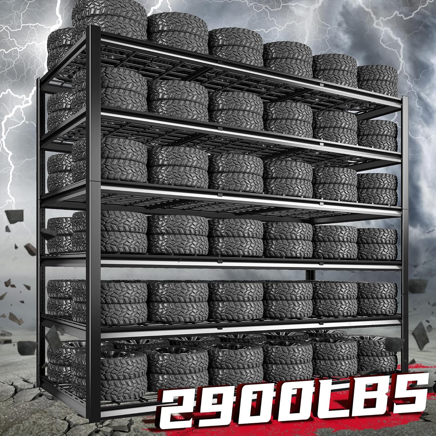 - ă6 Tier Extra Large Garage ShelvingăREIBII 6-Tier Extra Large Garage Shelving measure 60"W x 24"D x 84"H, offering expansive storage space. The 6-tier shelving unit provides ample room for heavy and bulky items such as storage bins, tools, heavy totes, accessories, machinery, tires, and other garage equipment. This heavy duty shelving is an ideal high-grade choice for garages, warehouses, basements, pantries, offices, living rooms, kitchens, and any other rooms
