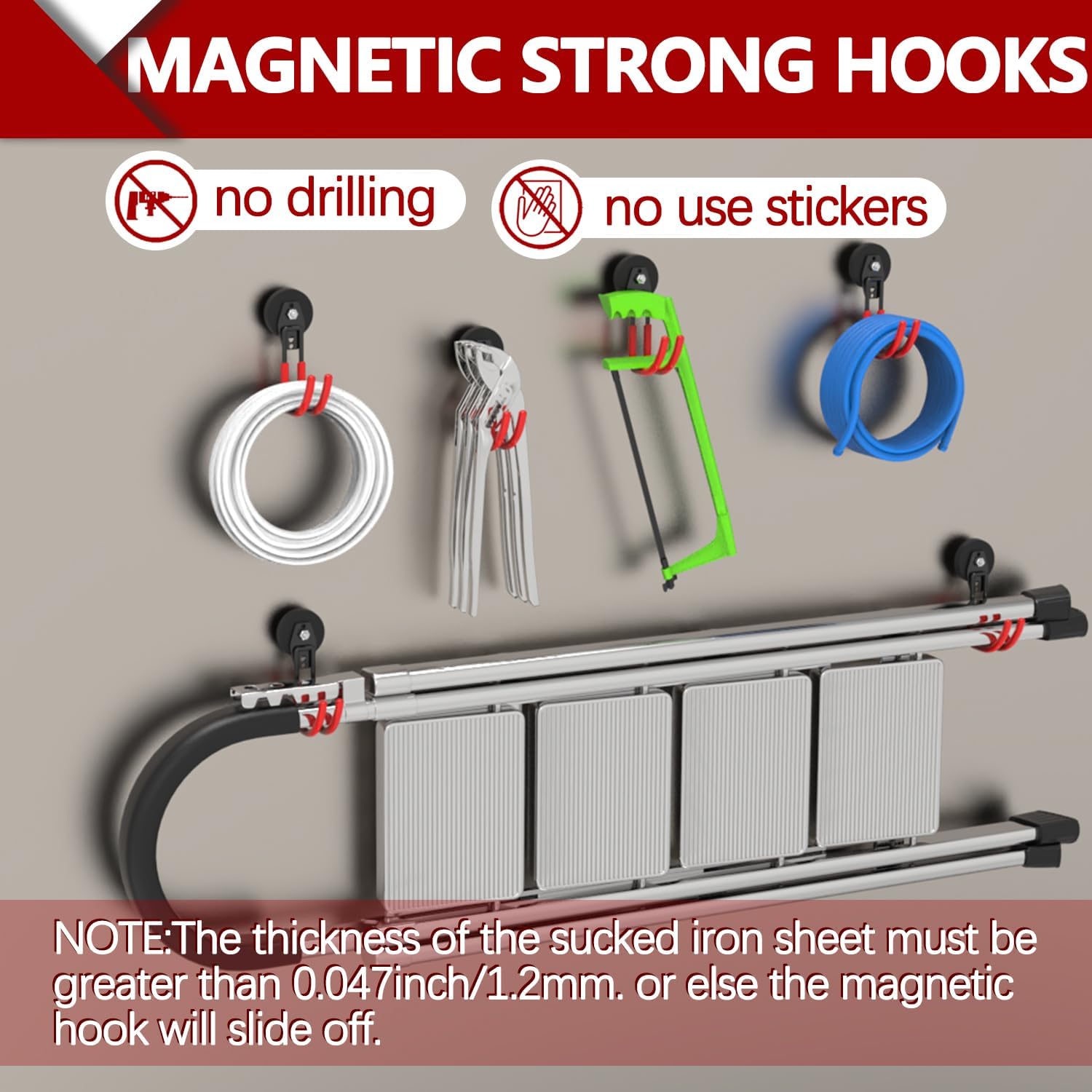 - Space Saving Heavy Duty Magnetic Hook: Our strong magnetic hooks offer an ideal solution for efficiently utilizing vertical garage storage space. The heavy duty magnetic hook is portable,versatile for use in garages, kitchens, offices, warehouses, gardens, and basements. These magnet hooks heavy duty help to reduce clutter and maximize available space to hang hoses, ropes, shovels, wires, cables, rakes and more