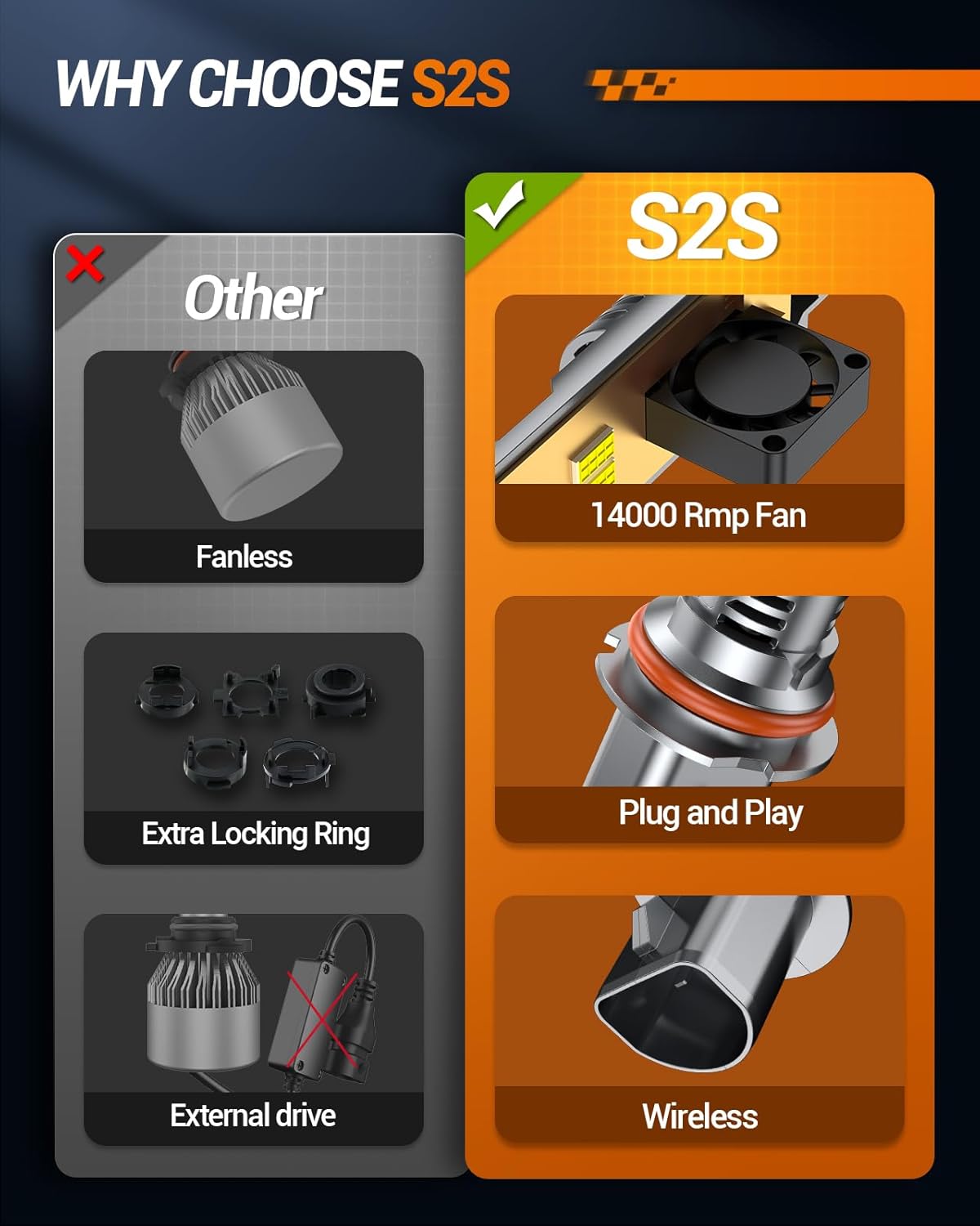 - Universal Compatibility: These S2S fog bulbs are designed to fit 99% of vehicles with built-in Canbus decoder that ensure no additional expense or concerns about flashing or failure.