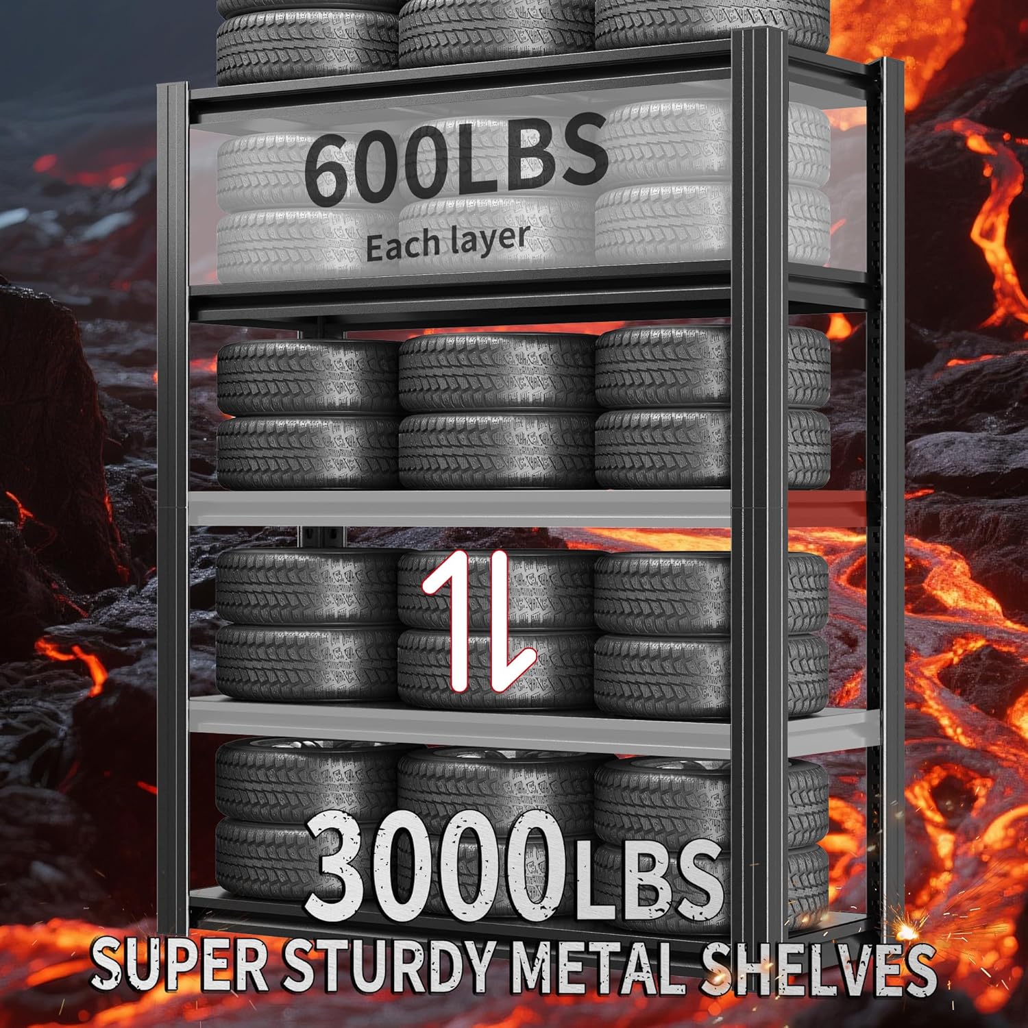 - ăHeavy-Duty CapacityăOur industrial garage shelving unit boasts a robust 2,500 lbs capacity, with each shelf supporting up to 500 lbs. Constructed from high-quality metal with reinforced double-layer legs, these multi-purpose garage storage shelves are designed to handle the toughest loads, making them ideal for garages, warehouses, and workshops.