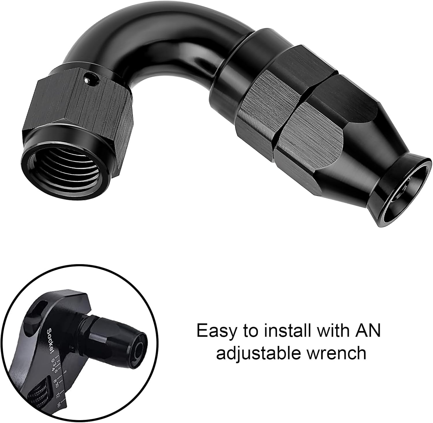 - [Application] These fittings are ONLY used with PTFE fuel lines for E85, alcohol, nitro, clutch, nitrous, power steering, oiling, hydraulics, and vacuum applications. A 360Β° swivel design allows for easy assembly.