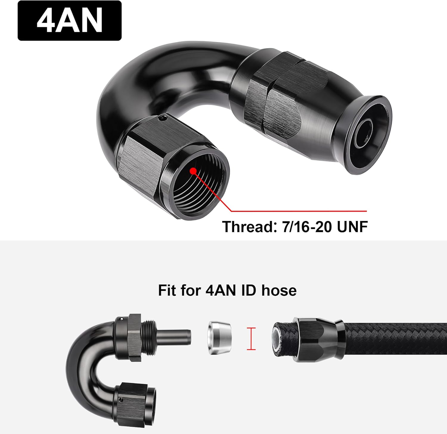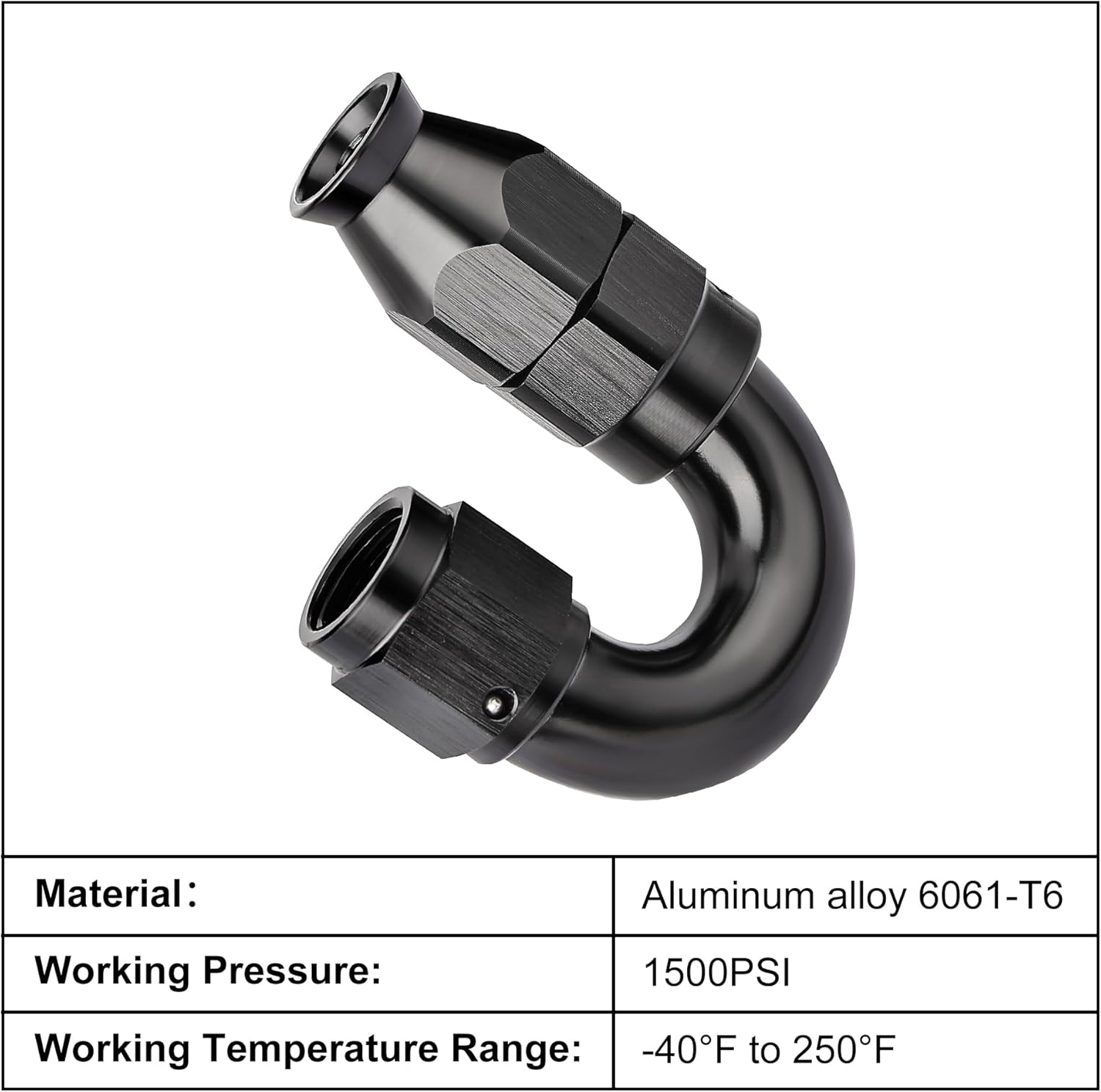 - [Built to Last] The one-piece PTFE hose end fitting is made from lightweight 6061-T6 aluminum alloy, and a black anodized finish on the surface increases durability, anti-corrosion, and wear resistance.