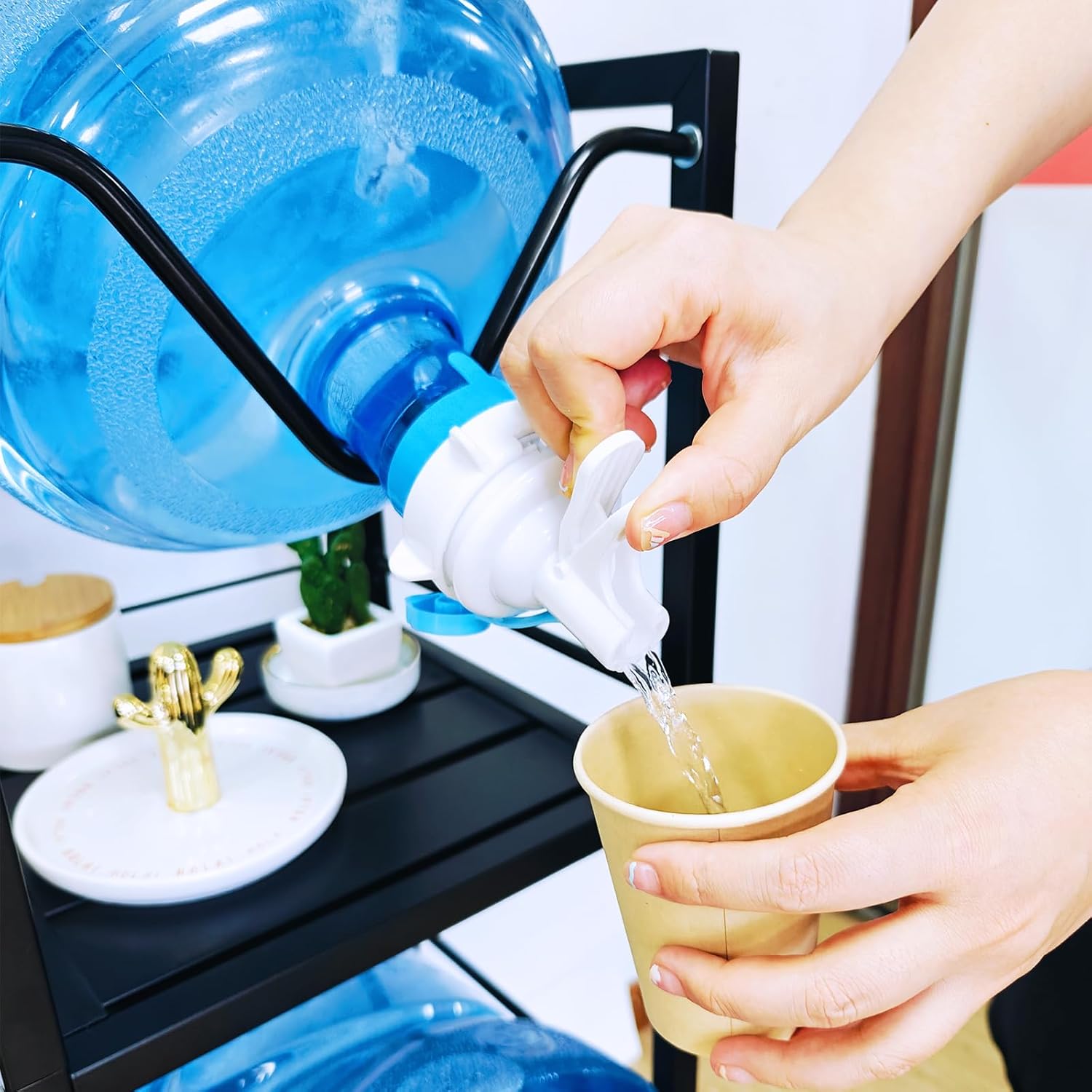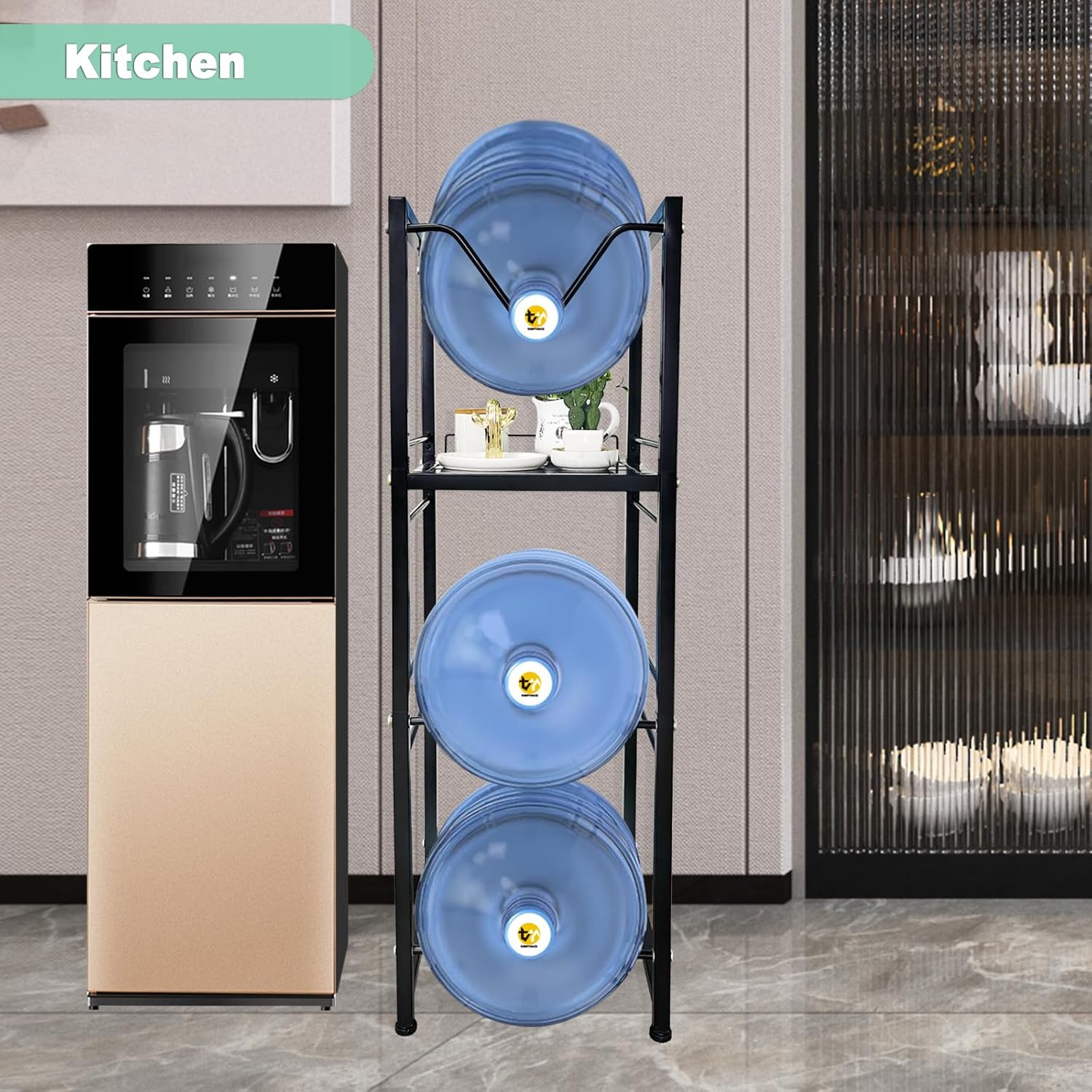 5 Gallon Water Jug Holder with 3-Tier Storage Shelves - Heavy Duty Stand with Fast Flow Spout - Fits 55mm Water Bottle - For Kitchen, Living Room, Office - Black