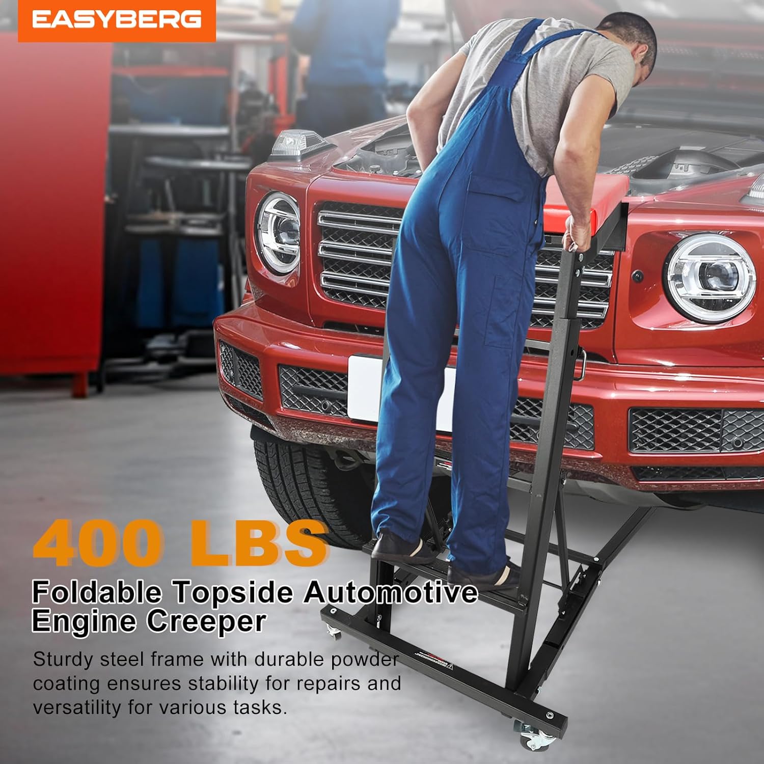 EASYBERG Foldable Topside Creeper, 400LBS Capacity Height Adjustable High Top Engine Creep for Truck Home Garage Workshop Repair Maintaince with Casters and Padder Deck