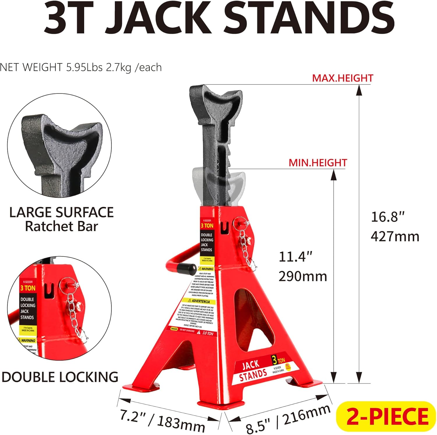 - ăWide Lifting Rangeă With an impressive lifting range of 3.3"-15.2", allows you to easily raise the jack to the desired height, no need for additional jack stands with safety bar in place. It is definitely an useful tool in any garage or workshop