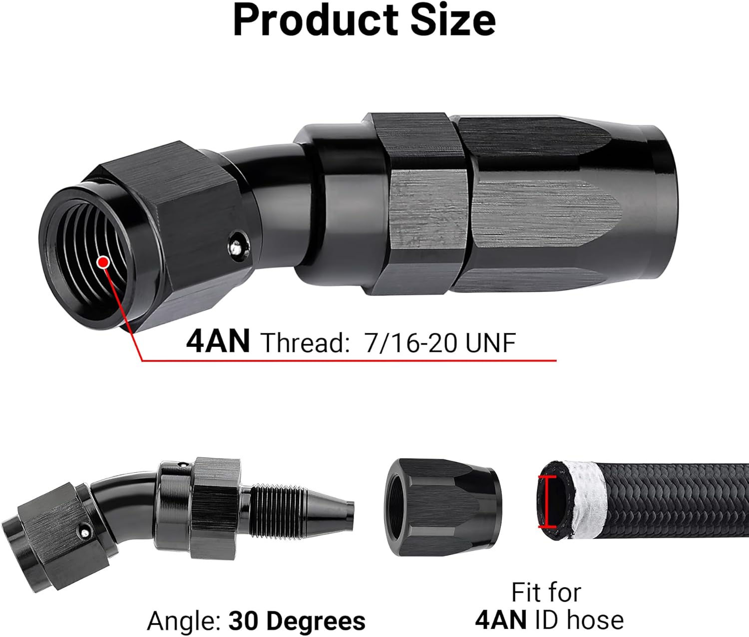 - Size: The thread size of 4AN is 7/16-20 UNF. The AN side is sealed by a 37 degree angle