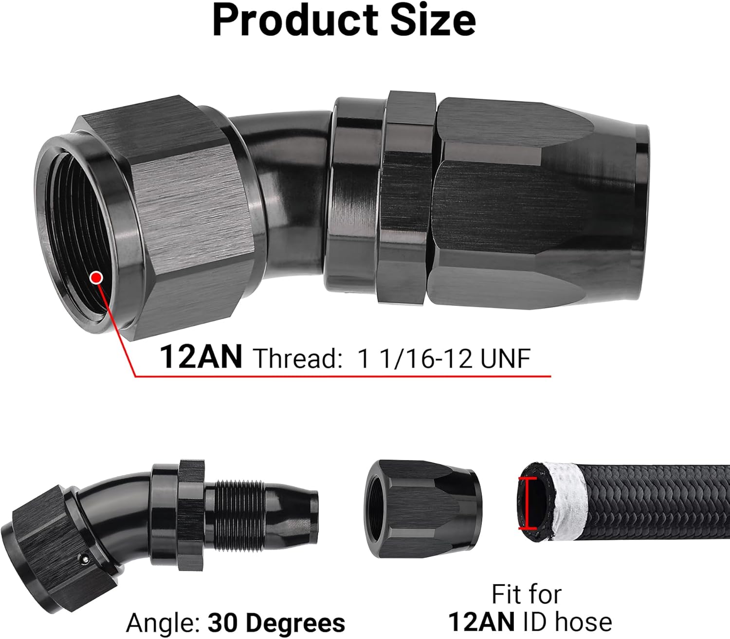 EVIL ENERGY 12AN 30 Degree One Piece Full Flow Hose End Fitting Swivel For CPE Braided Hose