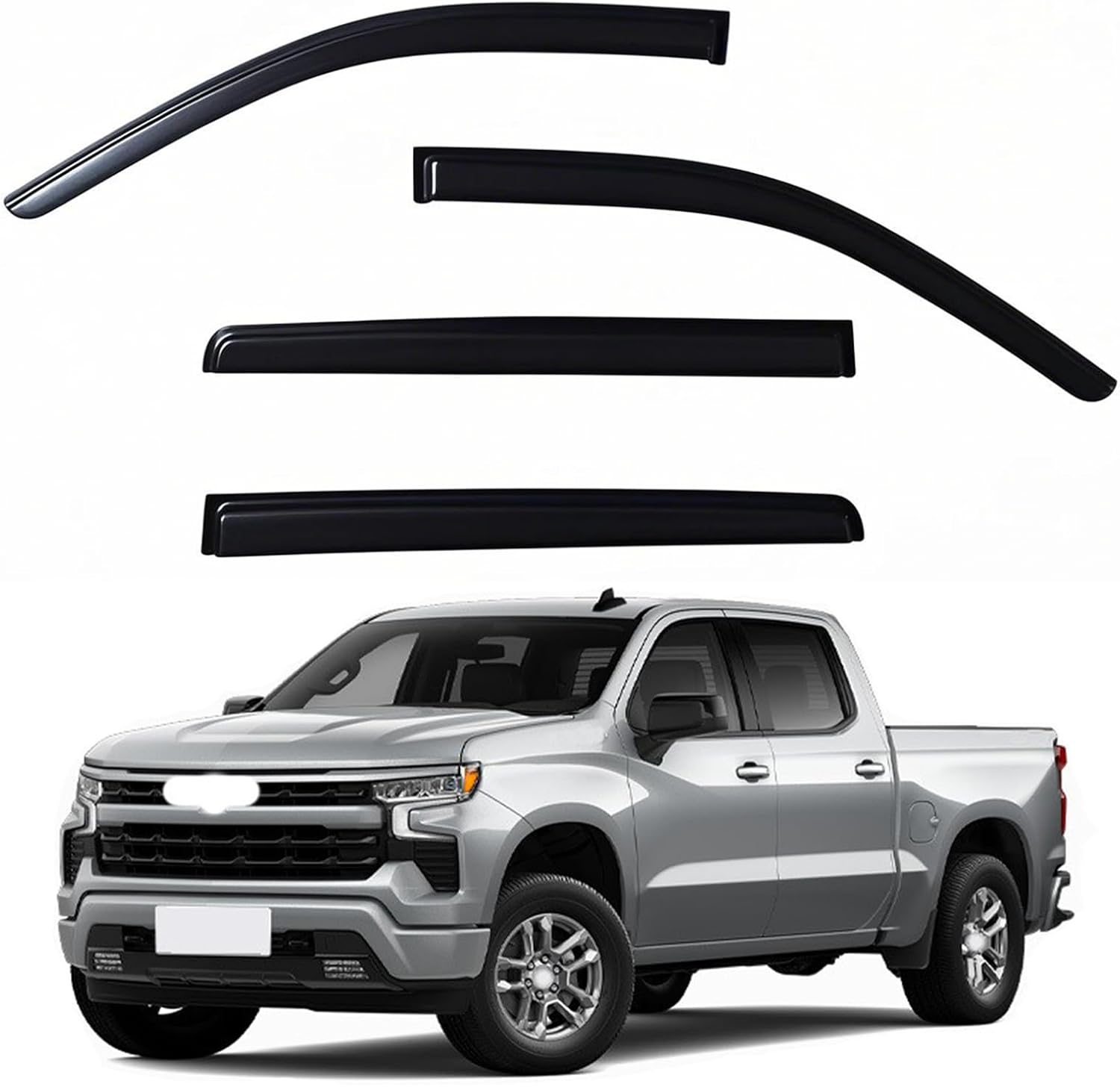 - 【Fitment】-YLSCOO Window Visors Compatible with 2019-2025 Silverado 1500 & GMC Sierra 1500, 2020-2025 Silverado/GMC Sierra 2500 HD / 3500 HD, 2022 Limited Model Crew Cab. Note: Please check the display picture to see the cab difference and make sure your truck is the correct cab that this item will fit