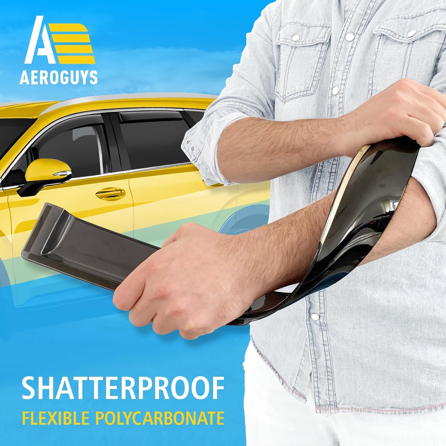 - Incredibly Durable AEROGUYS Auto Window Deflectors β They are made with strong and tough polycarbonate which is clear and scratch-resistant. They also provide UV protection making your ride more comfortable under all weather conditions.
