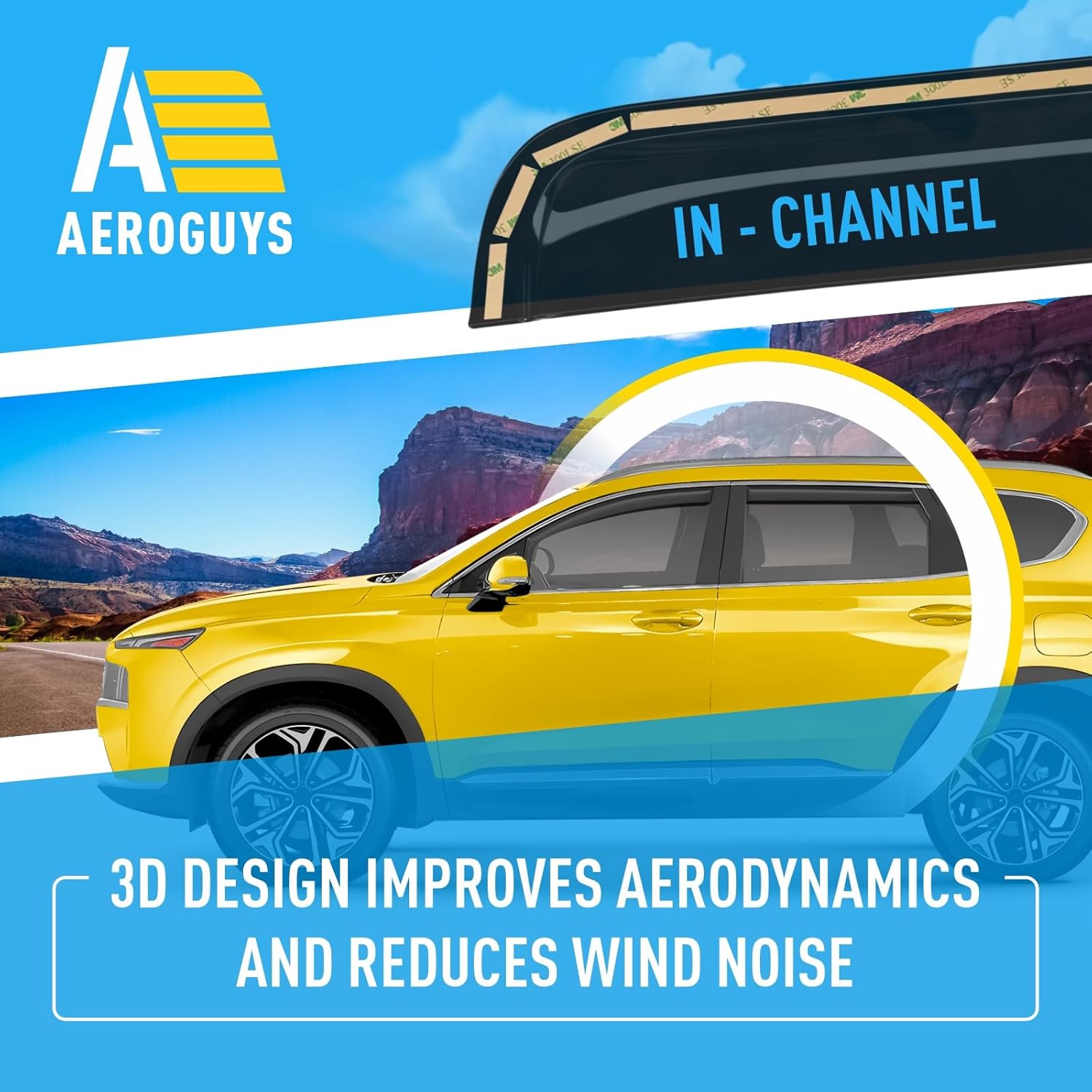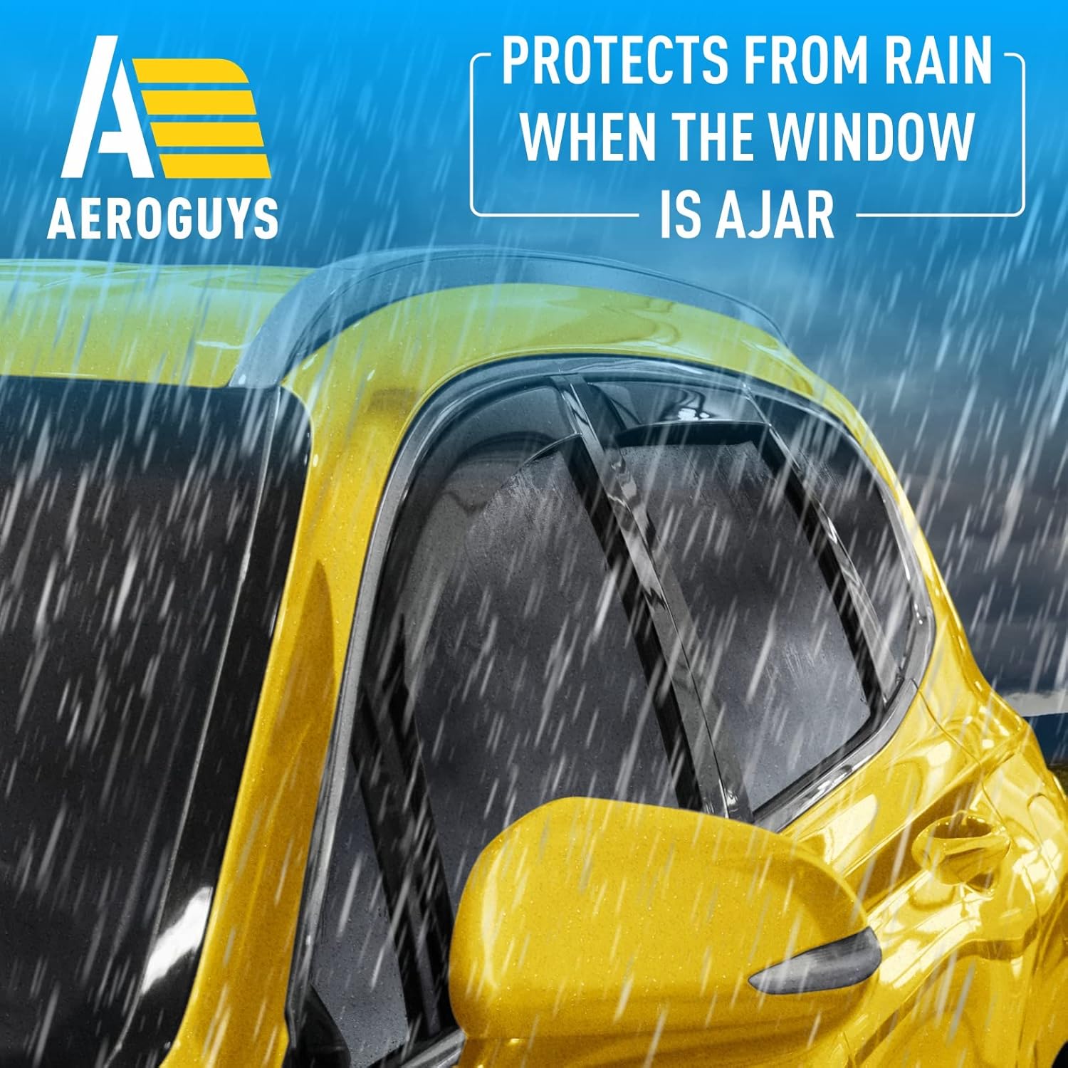 - No Tools Needed, Quick and Easy Assembly β These rain guards are very easy to fit. IN-CHANNEL INSTALLATION provides perfect fit for your car. Just slip it onto your carβs window and your job is done within minutes. There is no drilling or no tools required. Be sure that AEROGUYS window deflectors are water resistant, sun protective and will not bend, break or crack regardless of the weather conditions.