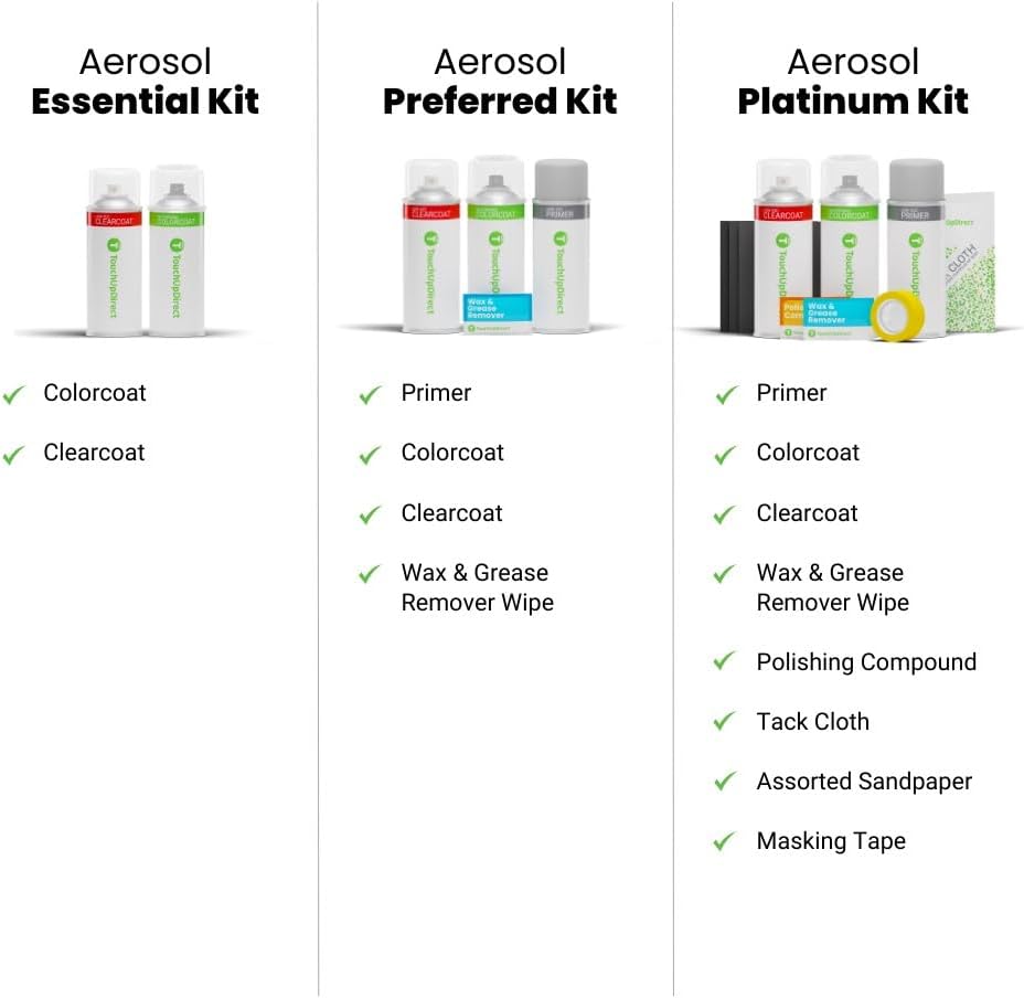 - Aerosol Essential Touch Up Paint Kit includes Colorcoat and Clearcoat touch up spray cans. Clearcoat paint for cars adds gloss and protection. Coverage: 3-4 cans for hoods/trunk lids, 2-3 cans for bumpers, 1 can for mirrors. Perfect for car paint scratch repair.