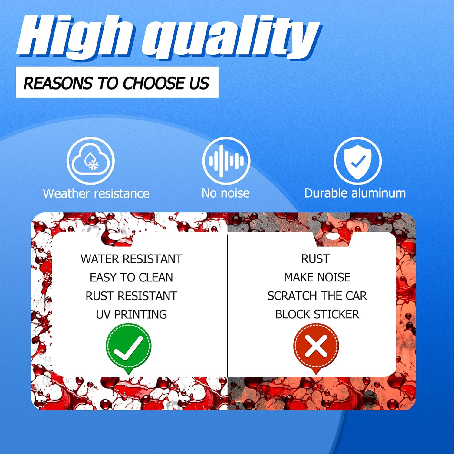 - Design:Use Advanced digital printing Protects license plate frames from Whether it's a car wash, heavy rain or hot weather, it still looks brand new,Let your car still be unique and stylish while driving on the road
