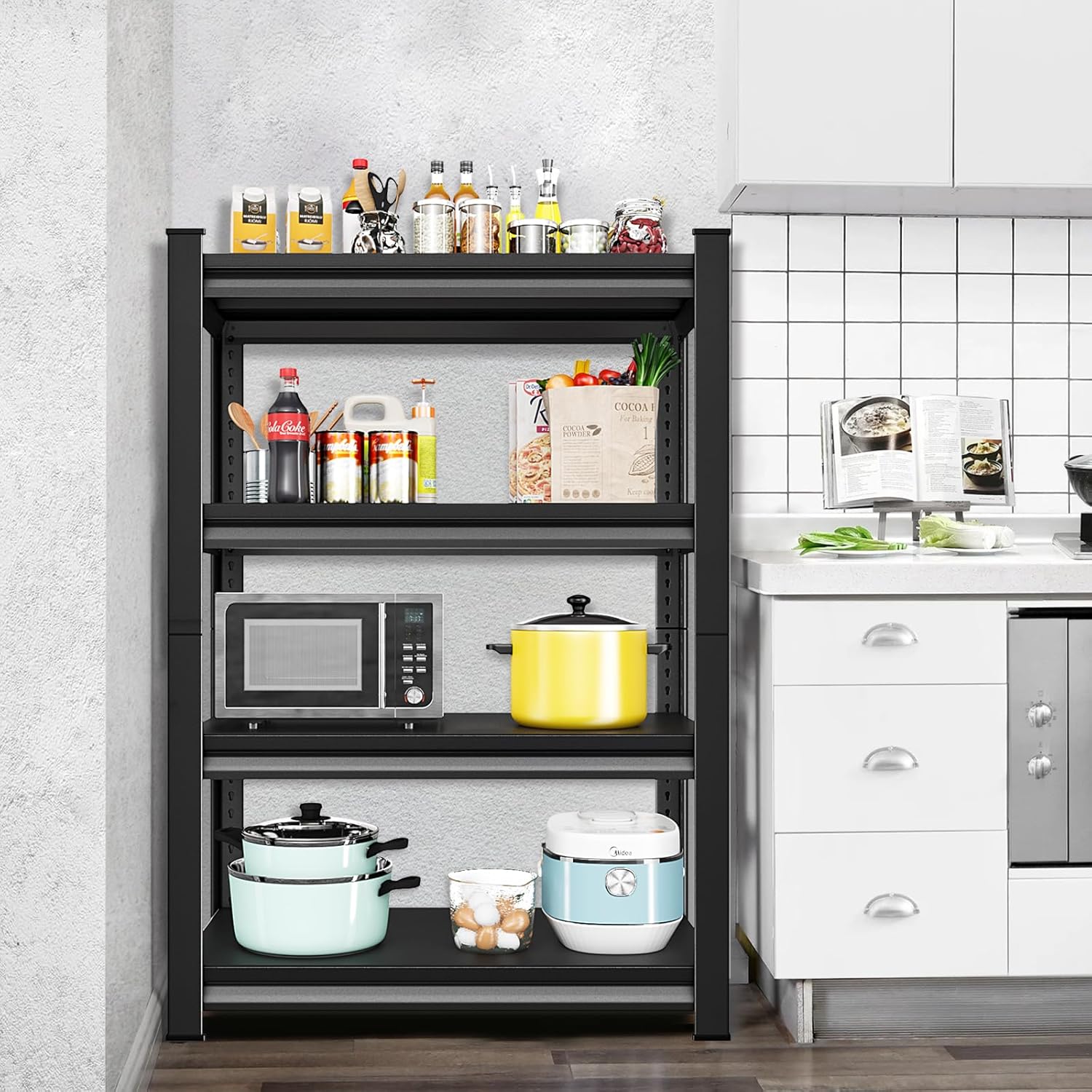 - 【Wide Application】Metal shelving are not only a good helper for you to use space reasonably, but also a fashionable choice. The heavy duty garage shelving are suitable for many scenes,such as garages, warehouses, basements, storeroom, kitchens, etc .
