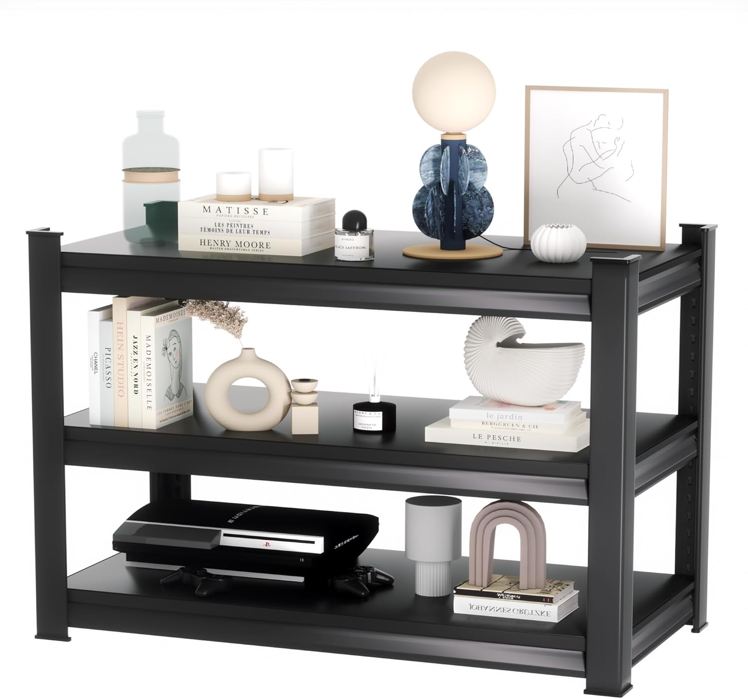 1350LBS Garage Storage Shelves Heavy Duty, 40" W x 16" D x 36" H,3-Tier Garage Shelving Heavy Duty, Industrial Metal Shelving Units for Basement,Fish Tank,Black
