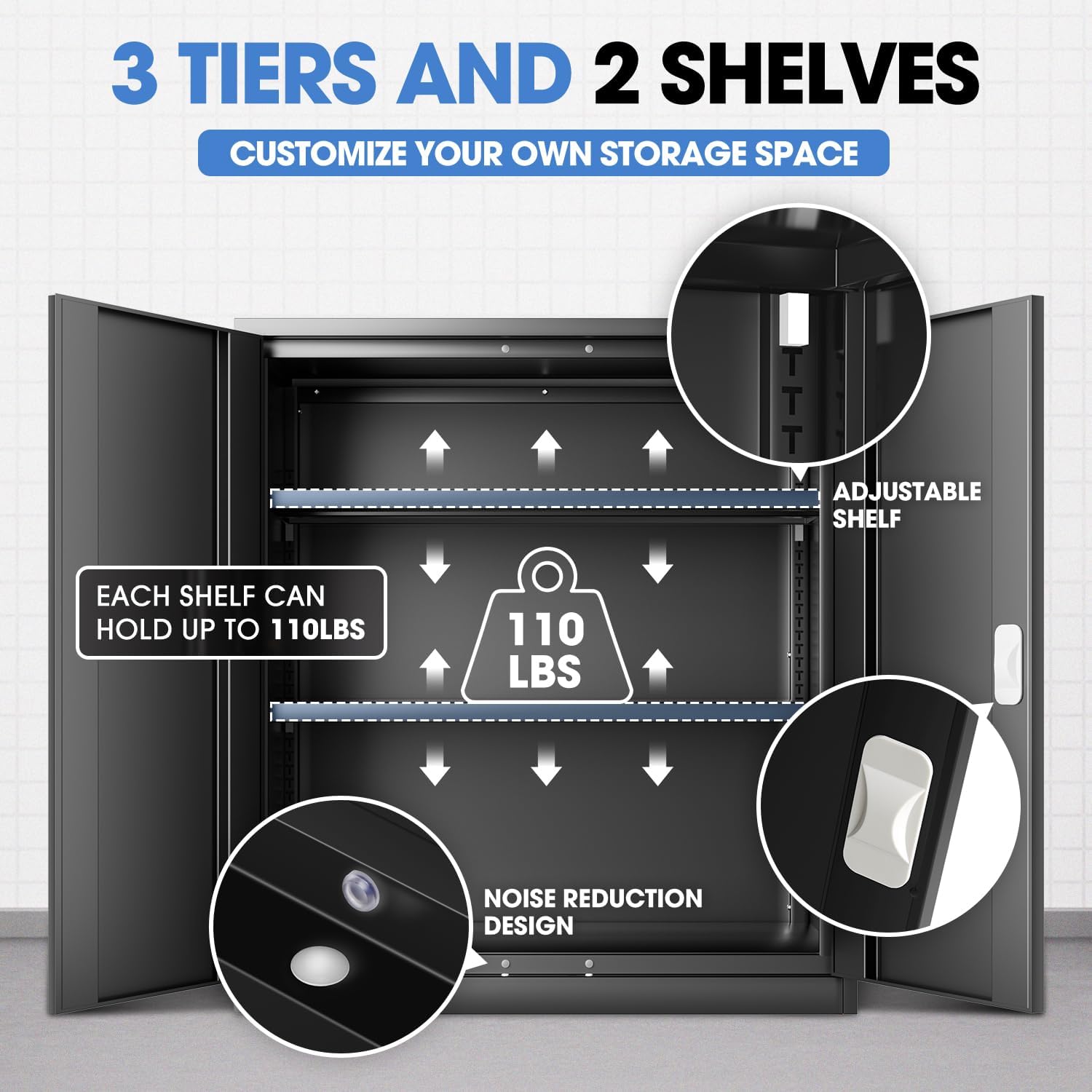 DNA MOTORING Metal Storage Cabinet, 36'' Locking Cabinet with 2 Doors and 2 Adjustable Shelves, Metal Cabinet Heavy Duty Utility Cabinet for Garage,Office,Home,Gym, Black, TOOLS-00631-BK-BK