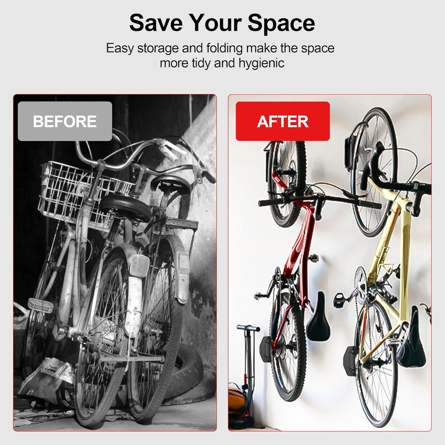 - Swivel Design : Features a built-in bearing system, allowing you to effortlessly store your bike in a center, left, or right-angled position. With a swivel range of +65Β° to -85Β°, easily pivot your bike to the left or right