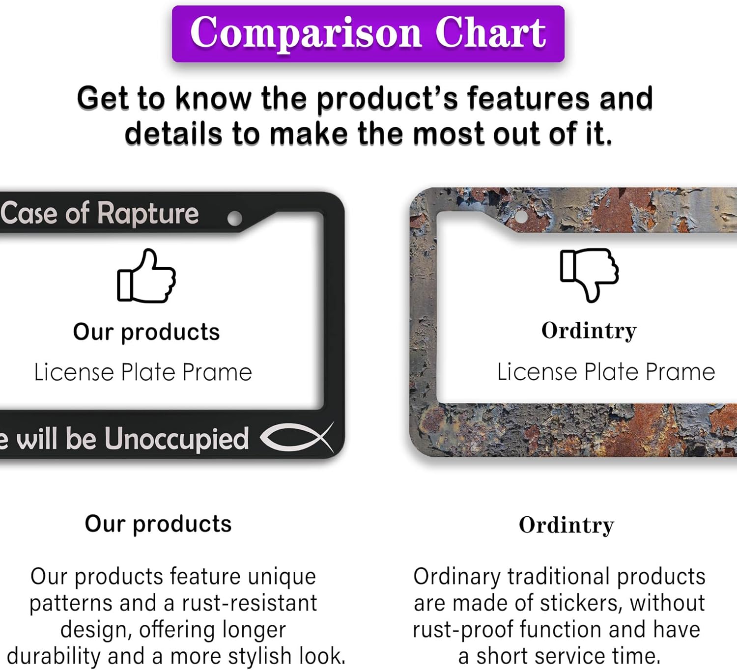 - FUNNY DESIGN: Featuring a unique and customized design, this license plate frame creates an eye-catching and bold statement for your vehicle. Not only does it add a touch of personality to your car, but it also makes for a great holiday gift, souvenir, or decorative piece for family, friends, and colleagues. Elevate your vehicle's style while sharing a laugh!