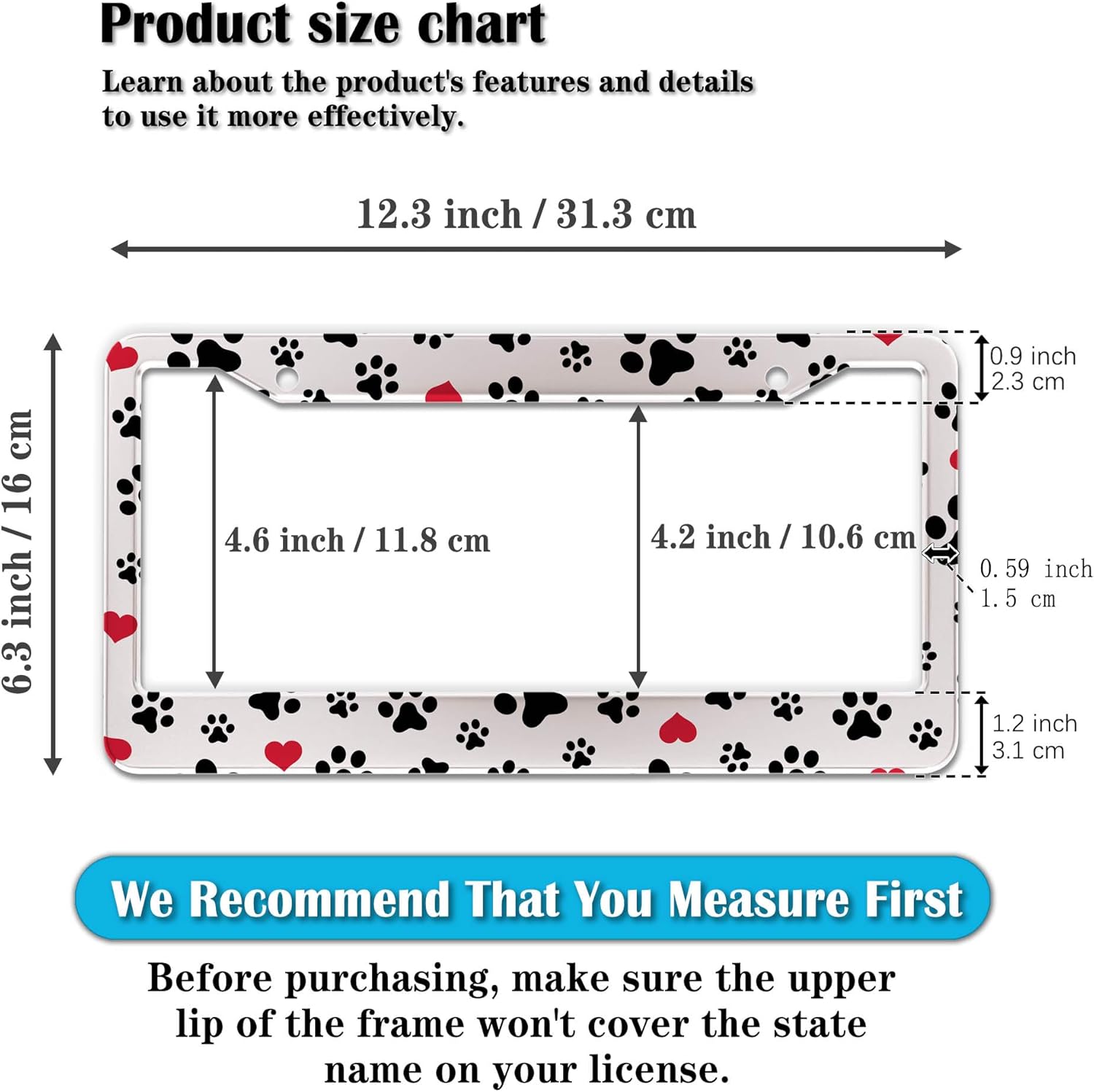 License Plate Frames Black, White, and Red License Plate Bracket Dog Footprints Universal Aluminum Car Accessory 2 Pack with Screw Covers Set