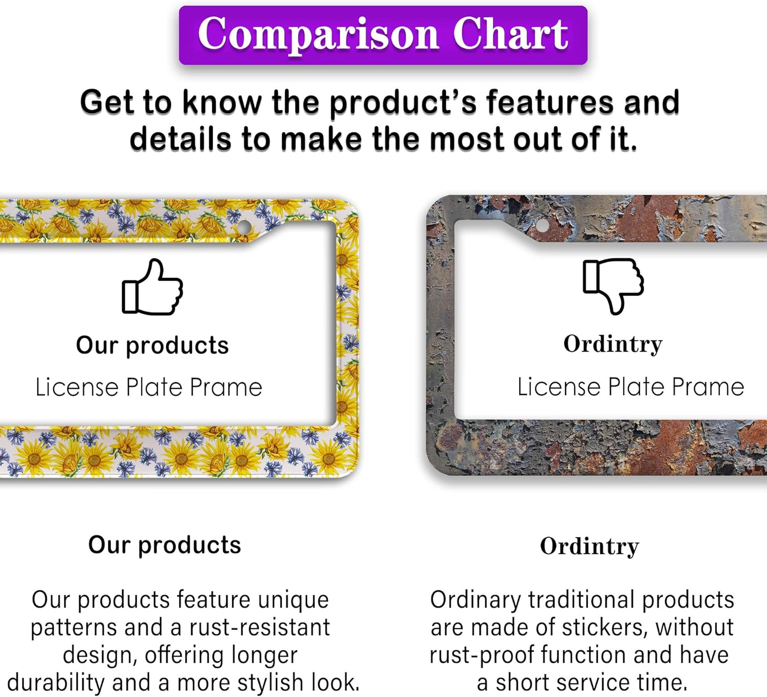License Plate Cover Frame for Women Multicolor License Plate Frames for Men Sunflowers Aluminum Metal Car Accessory 2 Pack with Screw Covers Set