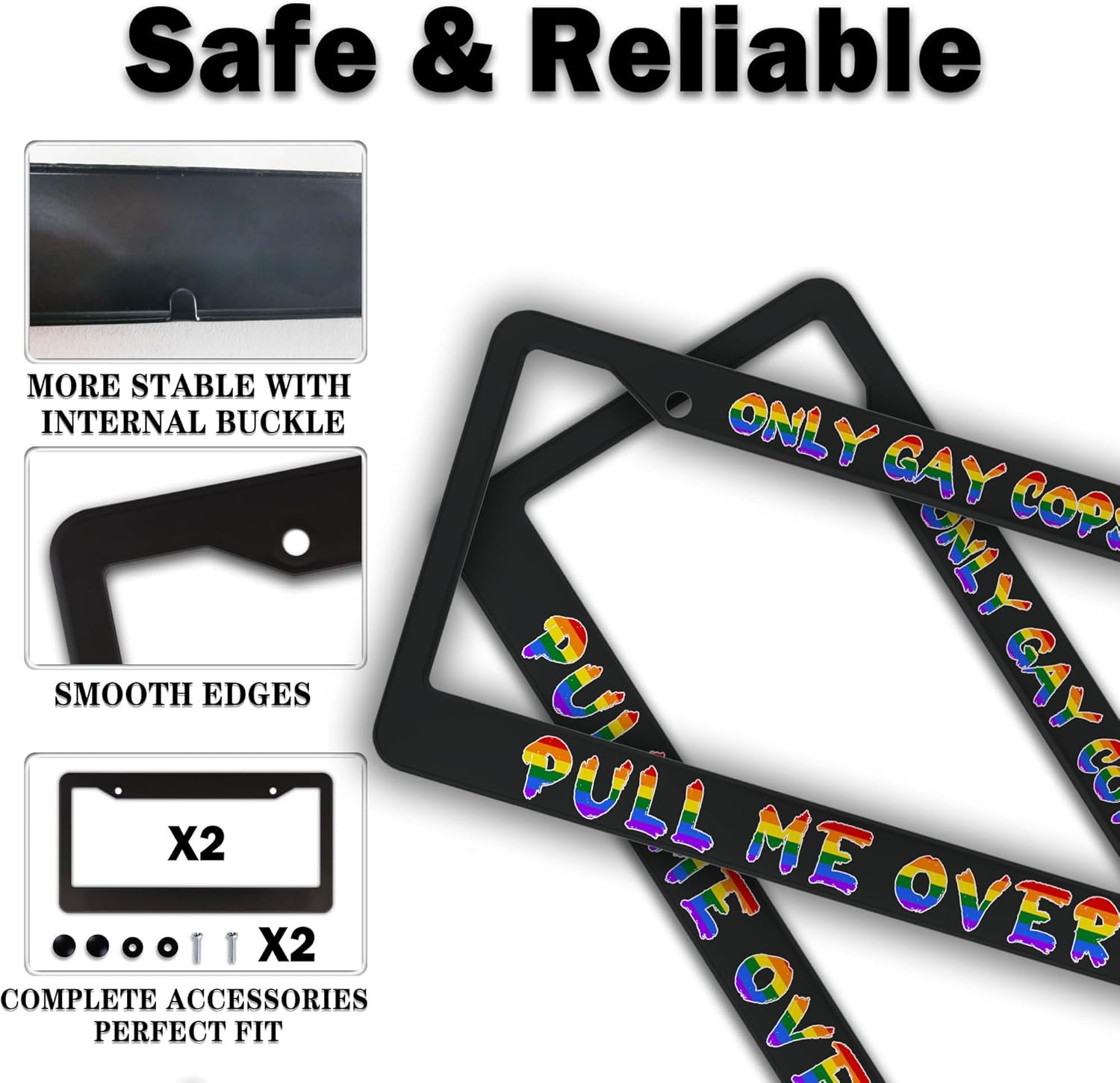 License Plate Frames Black and White Automotive Exterior Accessories Only Gay Cops Pull Me Over Universal Aluminum Car Accessory 2 Pack with Screw Covers Set